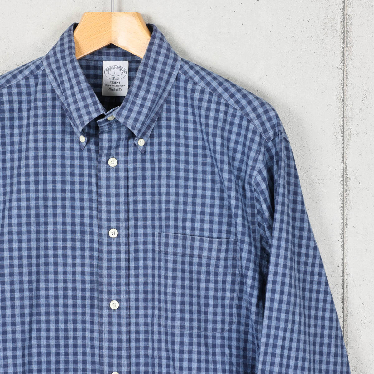 | 【ブランド】 Brooks Brothers / ブルックスブラザーズ 【アイテム】 チェック ボタンダウンシャツ 【商品説明】 アメリカで購入しました、ブルックスブラザーズのチェック柄のボタンダウンシャツになります。 【カラー】 ブルー×ネイビー 【コンディション】 使用に伴う色落ちや擦れなどがあります。 【サイズ】 サイズ:L 身幅:60cm 肩幅:48cm 着丈:78cm 袖丈:67cm | |||