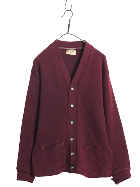 | 商品名 | 40s ★ ピューリタン ウール ニット カーディガン メンズ M 古着 ヴィンテージ セーター 前開き アワード バーガンディ 無地 ポケット付き |