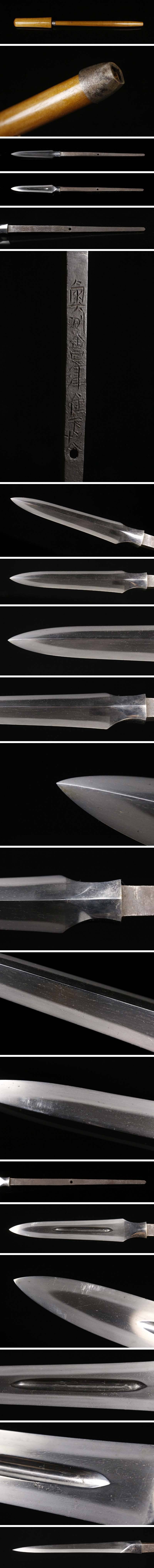 [.QQ]25.10 251017F19* * * 商品詳細 * * * ここでしか出逢うことのできない唯一の美をご紹介させて頂きます。 端正な刃文が美しい奥州会津住下坂 平三角槍のご紹介です。 奥州会津住下坂は、「加藤嘉明」に仕えて藩工となった「為康」の作品と伝えられ、 為康の一門は1688年(元禄元年)頃まで数代続きました。 明るい本身には端正な刃文が美しく 鋭利な刃先からは武具ならではの緊張感が漂います。 武具としての役割を強く感じさせ、 刃渡は短くも緊張感ある佇まいが貫禄を感じさせる逸品を、 この機会にぜひお手元にてご堪能ください。 ■商品内容/槍本体、白鞘 ■本身サイズ 全長/29㎝ 刃渡/10.6㎝ 元幅/1.7㎝ 先幅/1㎝ 元重/0.8㎝ 先重/0.5㎝ 本身重量/89g ■状態/刃切、刃毀はございません。 傷、錆び、白鞘にスレ、傷、錆びがございます。 被せの抜き差しが緩くなっております。 ※写真にてご確認、ご了承の上ご入札ください。 ![]() * * * 支払詳細 * * * !かんたん決済 * * * 発送詳細 * * * 入金確認後3営業日以内に発送致します。 ※直接引き取りも可能です。 60~160サイズにつきましては 佐川急便、ゆうパックのどちらかで発送いたします。 ゆうパック発送の場合、弊社の発送日から追跡サービスに問合せ番号が反映されるまで 約1日ほどお時間がかかりますのでご了承下さい。 * * * 注意事項 * * * 運送中の破損があった場合は速やかに当社までご連絡下さい。 保険を利用するのに受取連絡後に運送会社による現場での破損状況確認が必要となります。 勝手に返送されますと保険の適用外となりますのでご注意ください。 * * * * * * お問い合わせ:082-236-8669 |