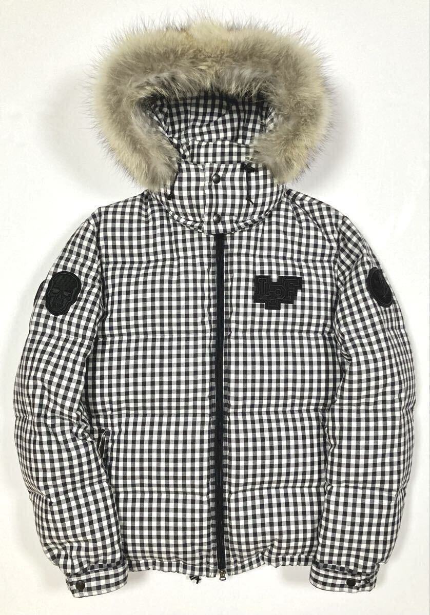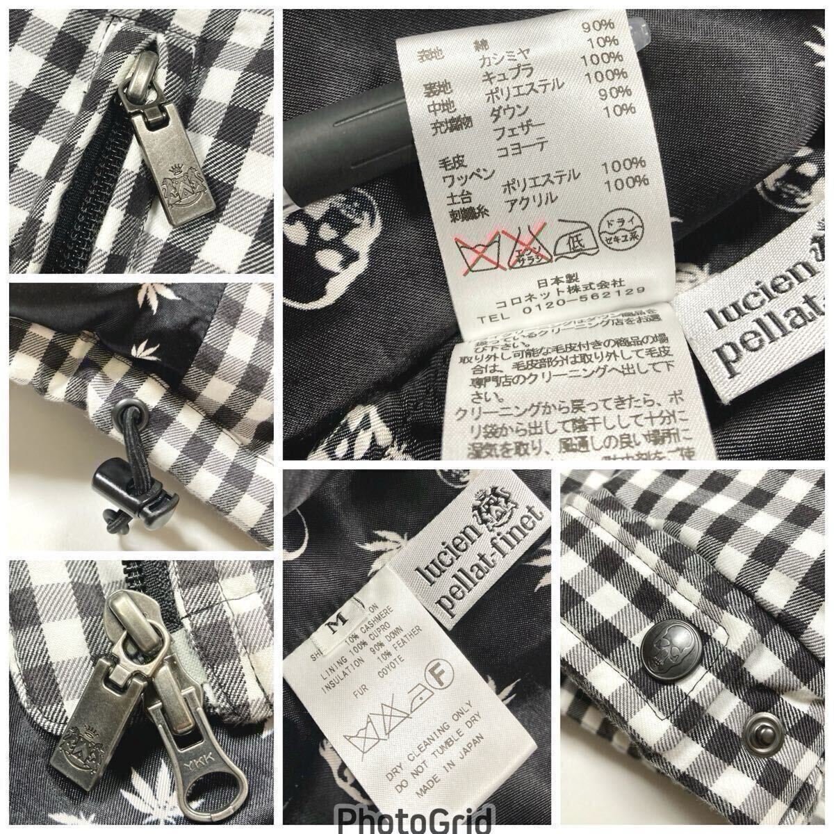 良品「lucien pellat-finet」チェック柄 コヨーテファー カシミア混コットンフランネル キルティング ダウンジャケット 日本製 M