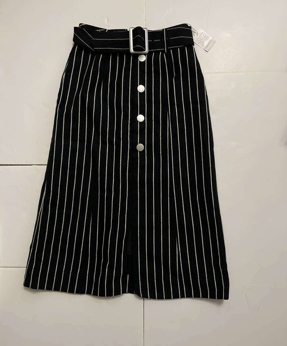 前ボタンは縫われています。前スリット有30cm。 長さ77cm コットン60%リネン40%| 出价者 | 信用 | 价格 | 时间 |