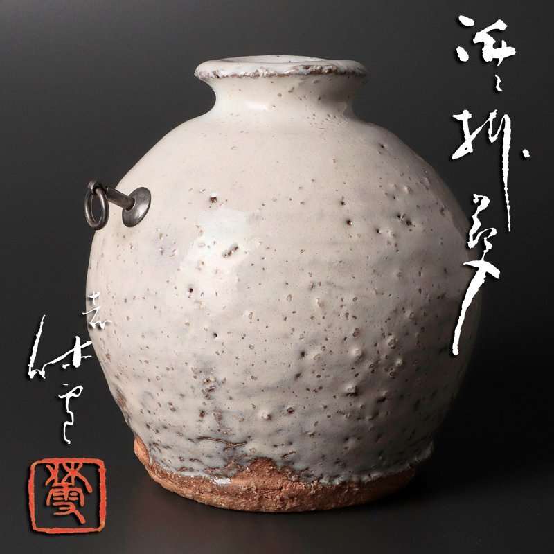 | 【古美味】人間国宝 十一代三輪休雪(壽雪) 萩掛花入 茶道具 保証品 |