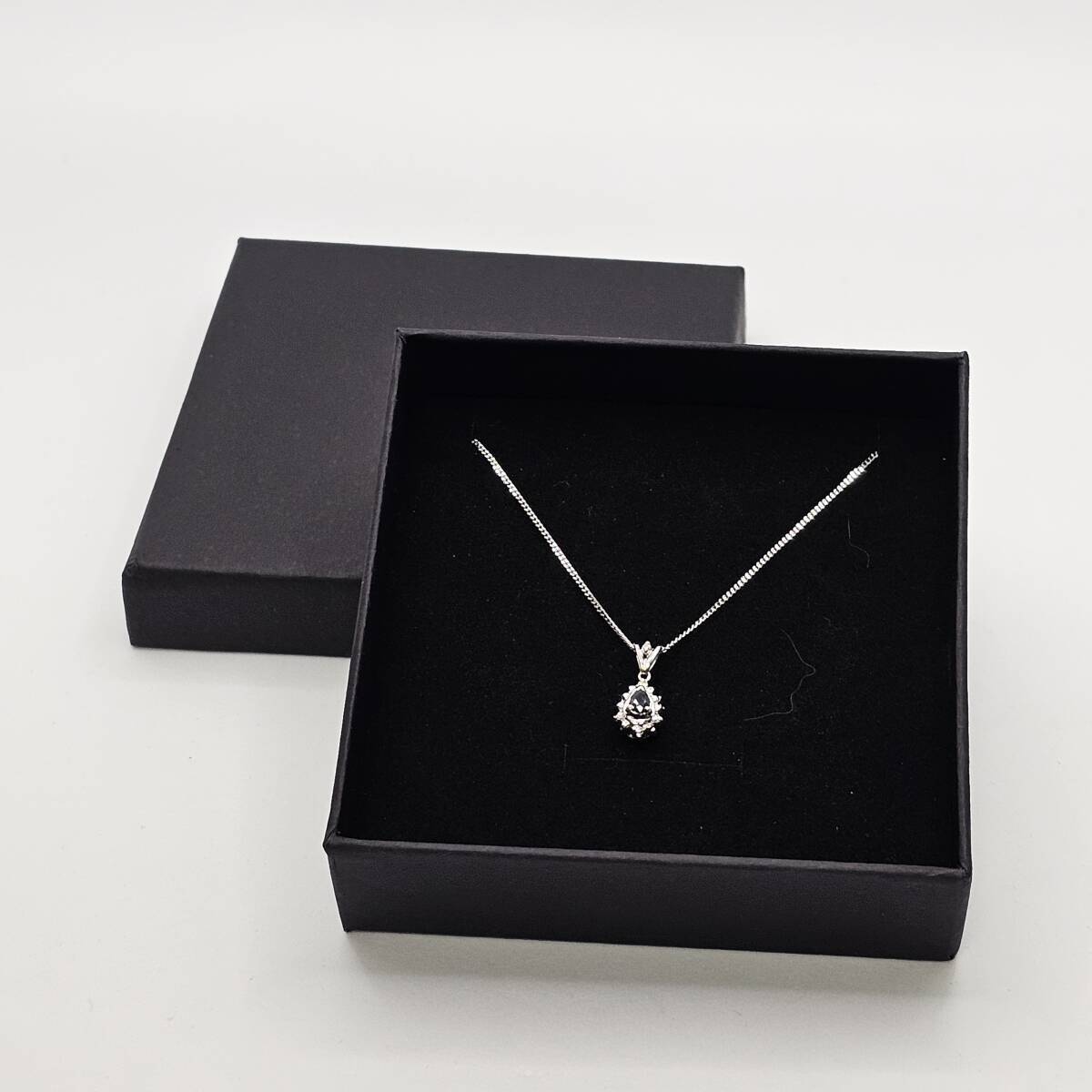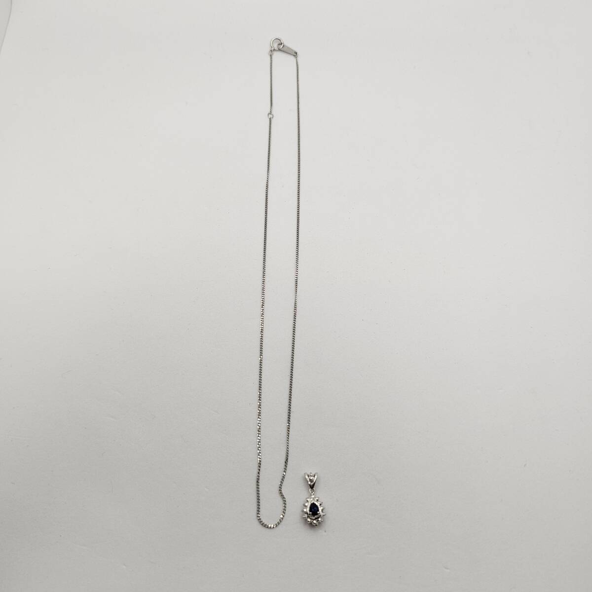 こちらは、上質なプラチナを使用した、天然サファイアと天然ダイヤモンドをあしらったネックレスです。