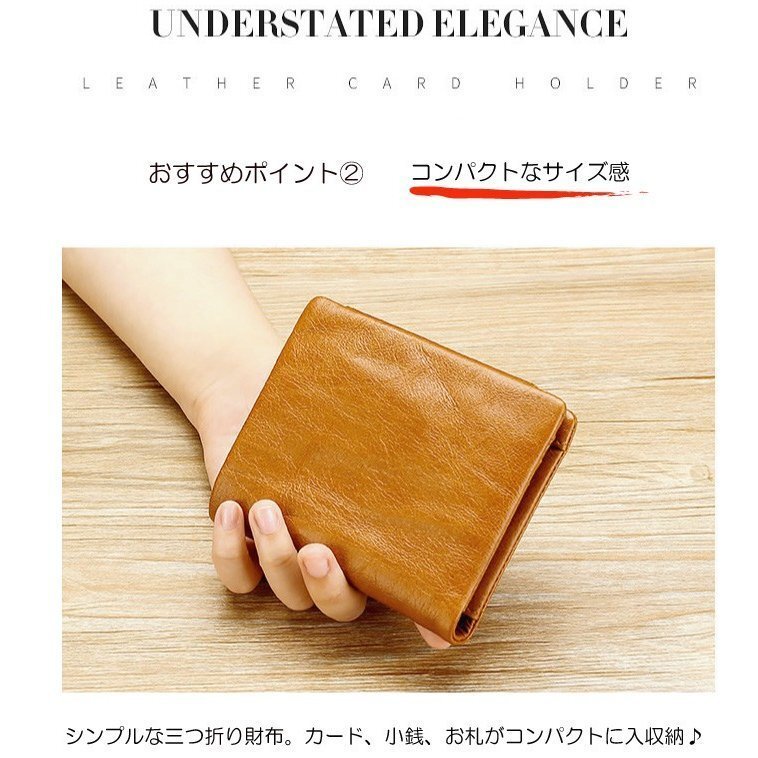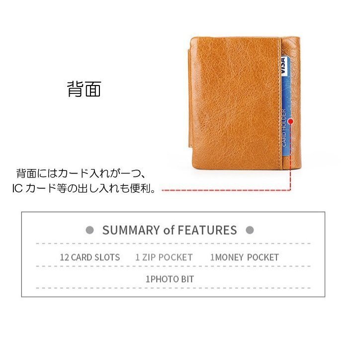 | 商品説明 | ★柔らかな上質牛革財布♪ ★自分使いはもちろん、ちょっとしたプレゼントにも。 ★シンプルな三つ折り財布。カード、小銭、お札がコンパクトに入収納♪ ★82gの軽量財布 ★あなたの大事なカードは、安全な場所にありますか? 近年増加しているスキミング犯罪から大事なカードを守る 電磁波シールド特殊素材を使用したアイテムです。 ★カード収納×9、お札入れ×1 小銭入れ×1 |
