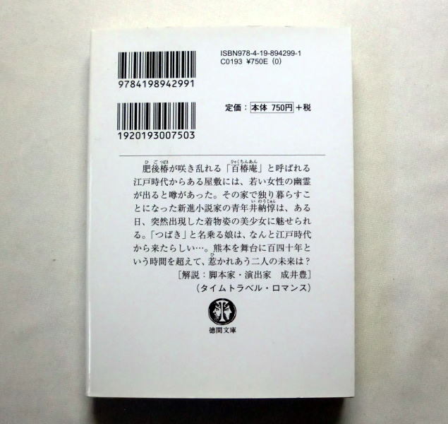 | 内容 | 肥後椿が咲き乱れる「百椿庵」と呼ばれる江戸時代からある屋敷には、 若い女性の幽霊が出ると噂があった。 その家で独り暮らすことになった新進小説家の青年井納惇は、 ある日、突然出現した着物姿の美少女に魅せられる。 「つばき」と名乗る娘は、なんと江戸時代から来たらしい…。 熊本を舞台に百四十年という時間を超えて、 惹かれあう二人の未来は? タイムトラベル・ロマンスSF。 |