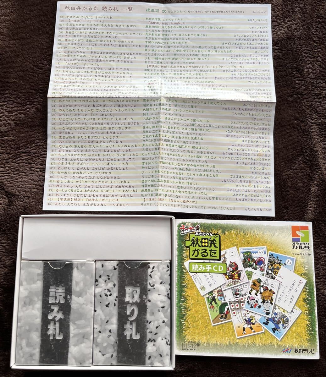 ご回覧いただきまして誠にありがとうございます。 秋田弁かるた 中古の出品になります。 全て揃っていますが、秋田弁の都合上、元々通常のかるたより4枚作製されていません。 読み札一覧には【不使用】とされています。 読み札一覧の折り目部分は切れ目が二か所と汚れあります。 CDは再生しました。 中古品になりますので神経質な方は、入札をお控えください。 |