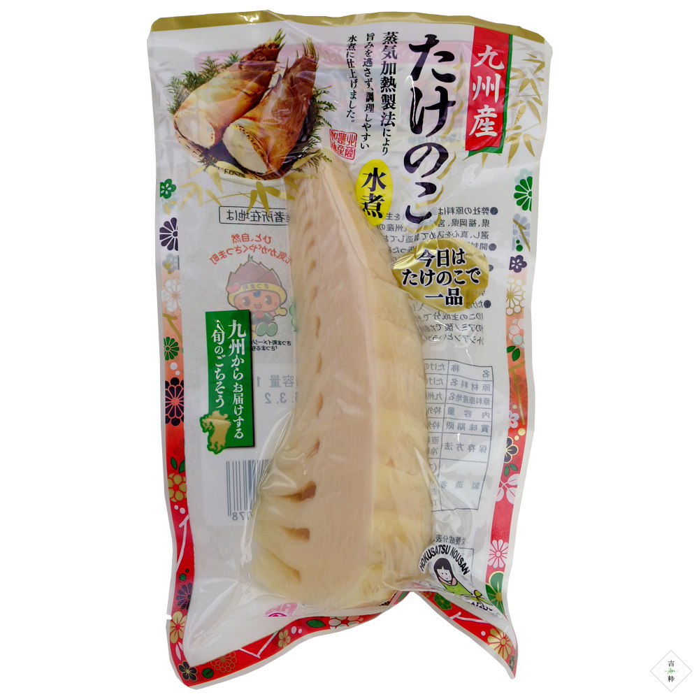 | 保存方法 | 直射日光、高温多湿な場所を避け冷暗所で保存して下さい。 ●開封後は充分に水を張った容器に入れ、冷蔵庫(10℃以下)で保存し、お早めにお召し上がり下さい。 ●たけのこに付着している白い結晶や液体は、たけのこの主成分でチロシンというタンパク質成分のアミノ酸です。根の部分の青紫の斑点は、アントシアンという天然含用物です。 | ||