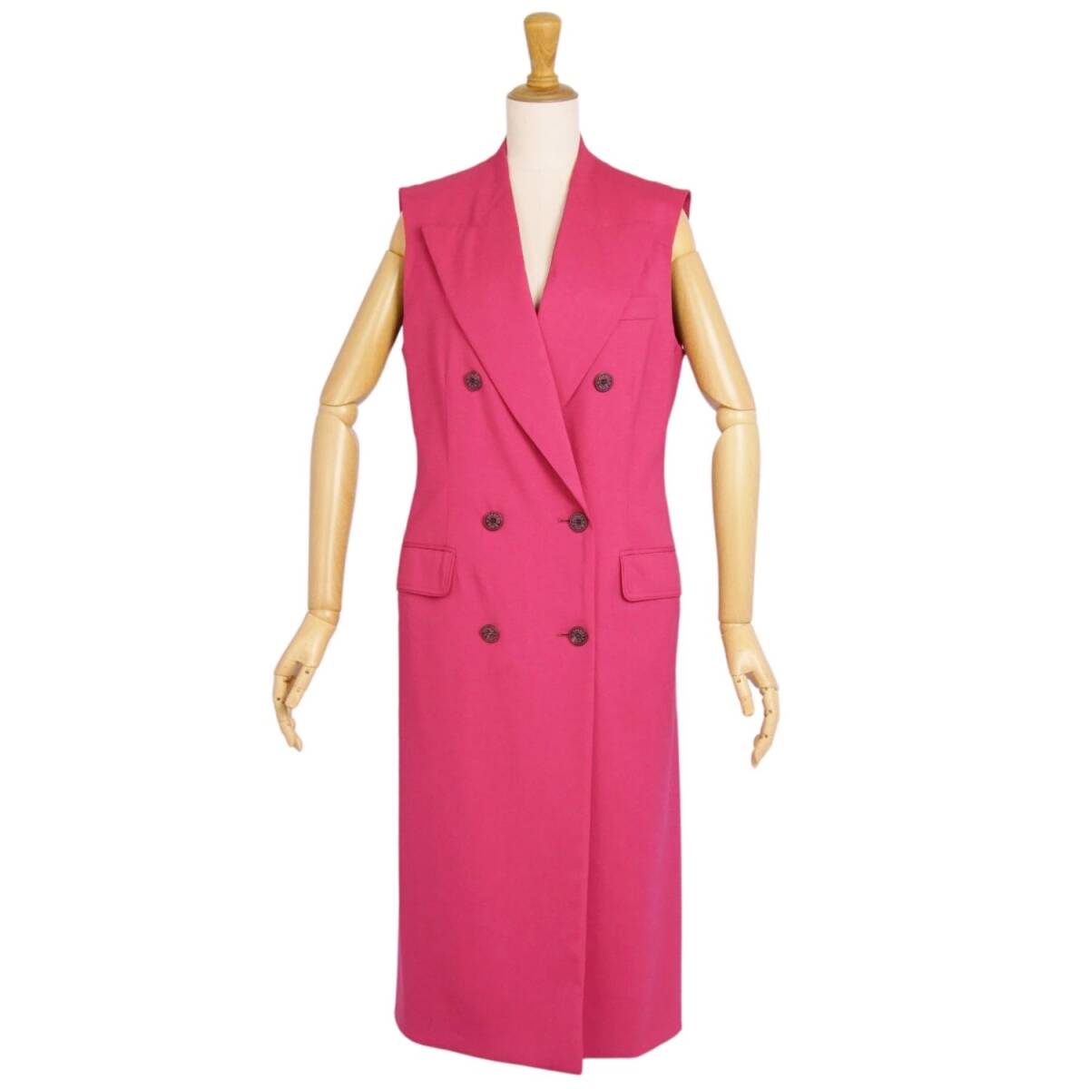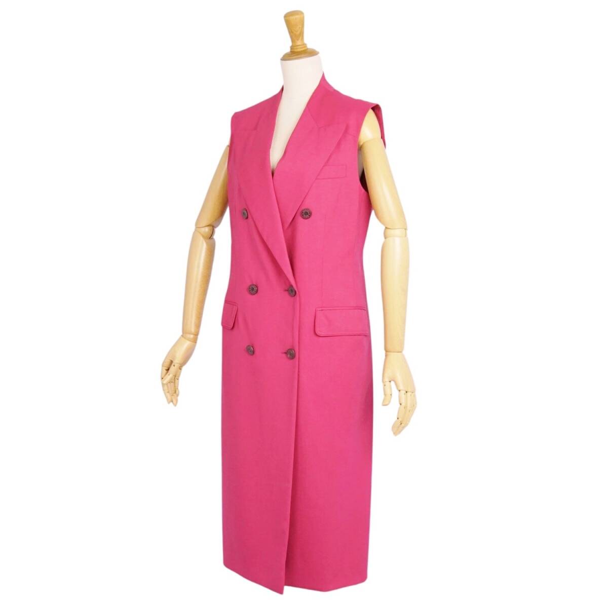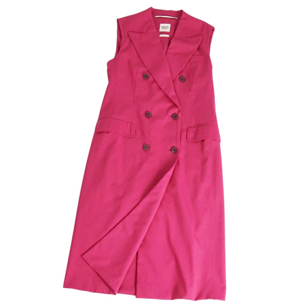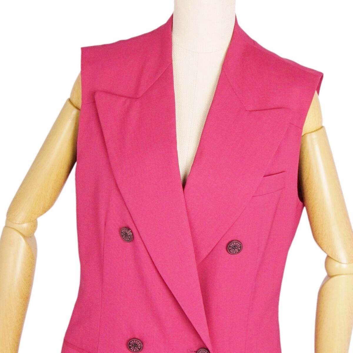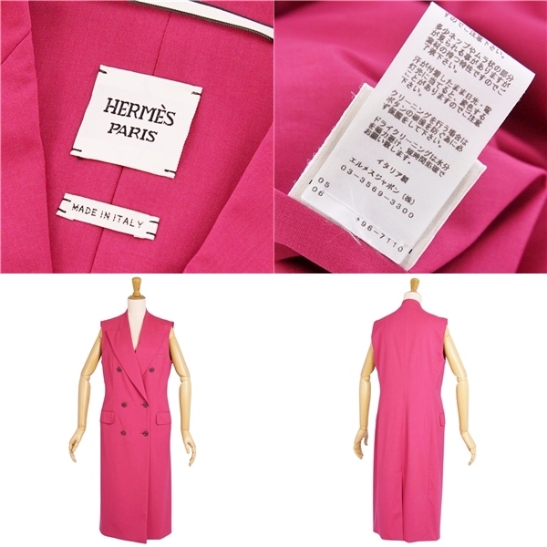 | 極美品 エルメス HERMES コート ロングジレ ノースリーブ ウール セリエボタン アウター レディース 36(S相当) ピンク |