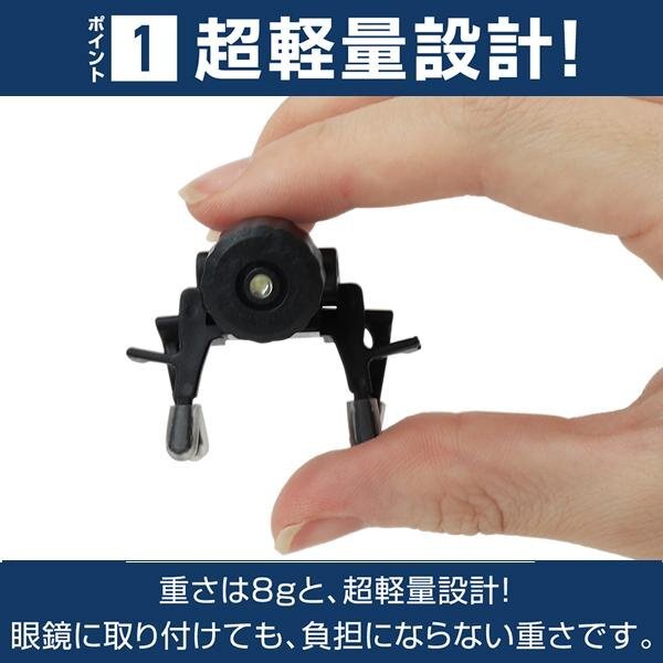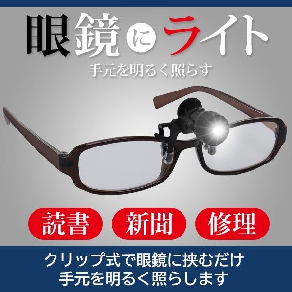 メガネに挟んでつける超小型クリップライト