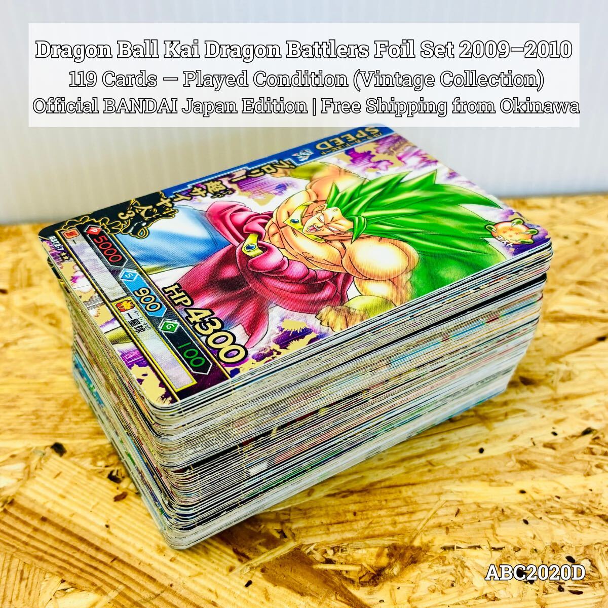 This is a set of 119 foil cards from Dragon Ball Kai: Dragon Battlers, released by BANDAI around 20092010. Condition: Played (some aging and slight scratches due to long-term storage). Free shipping via Yu-Packet.
