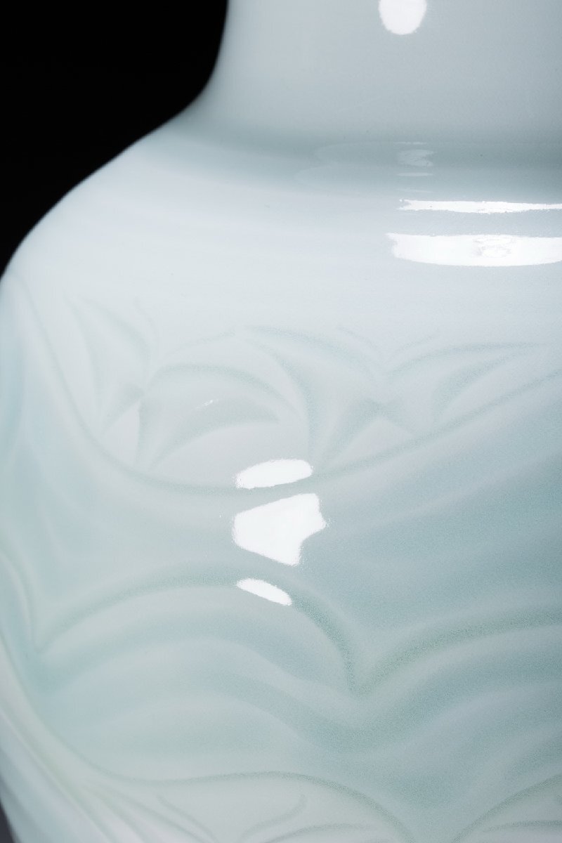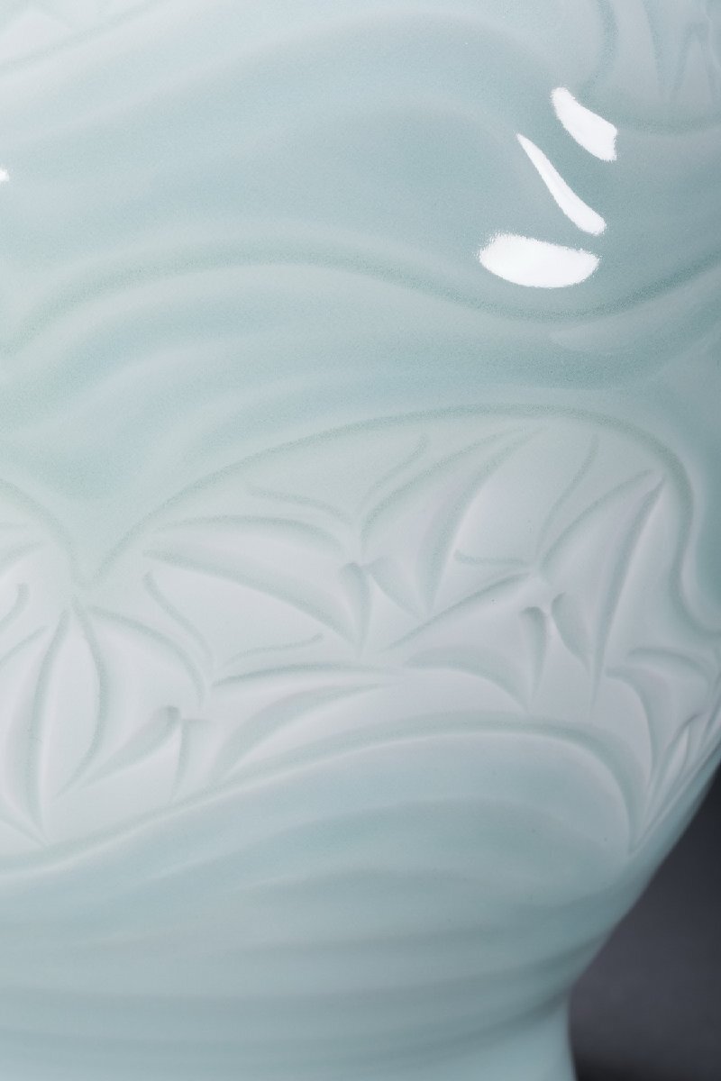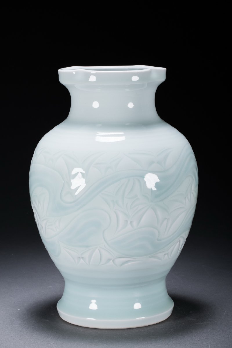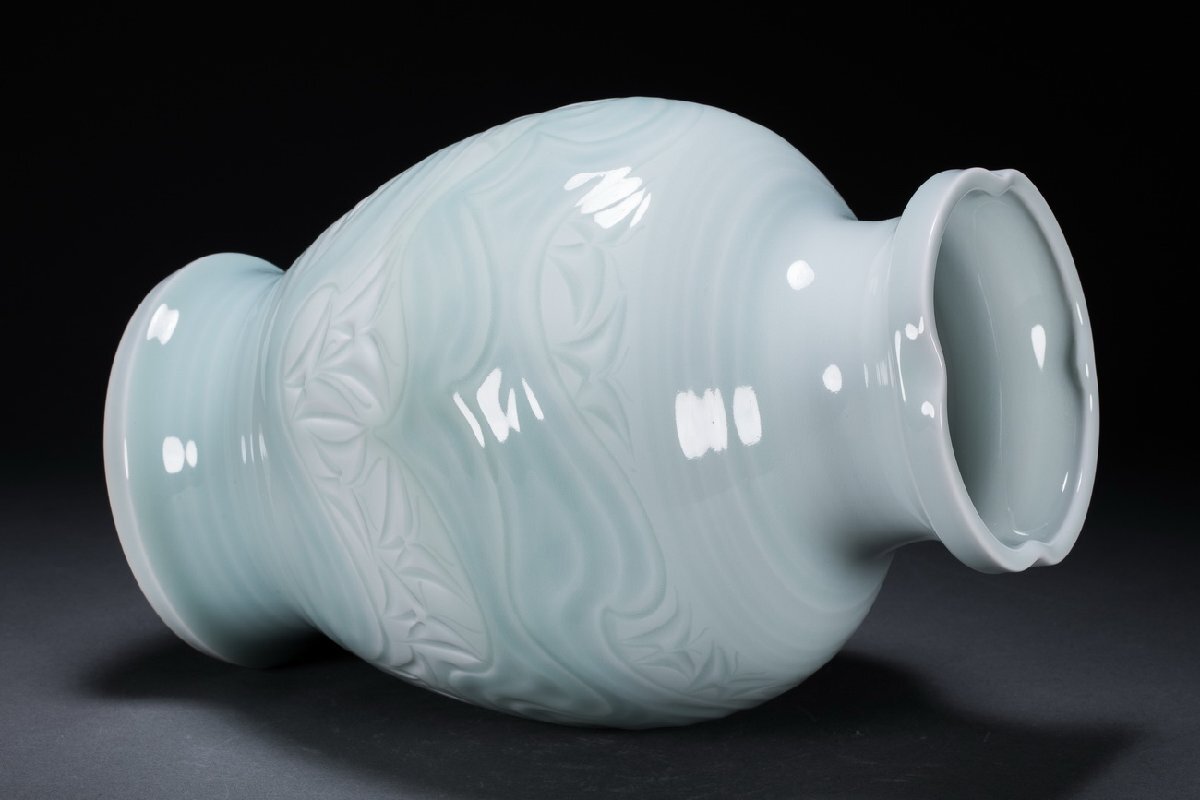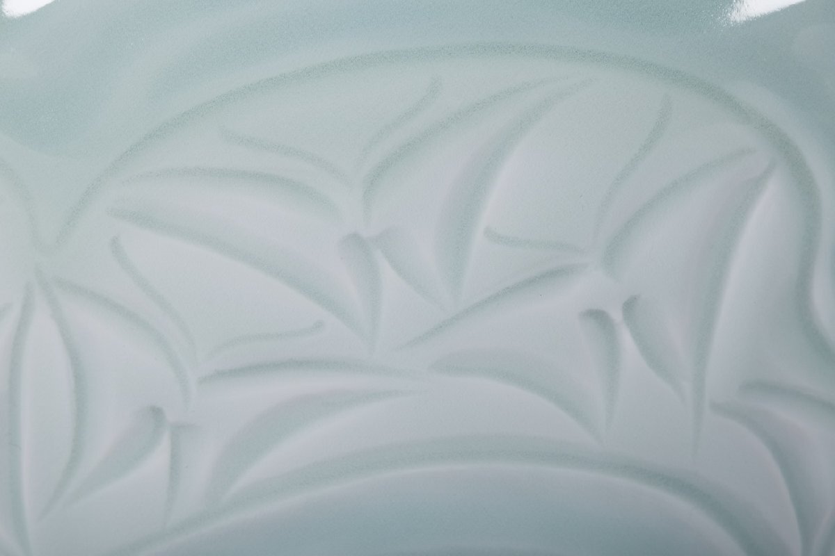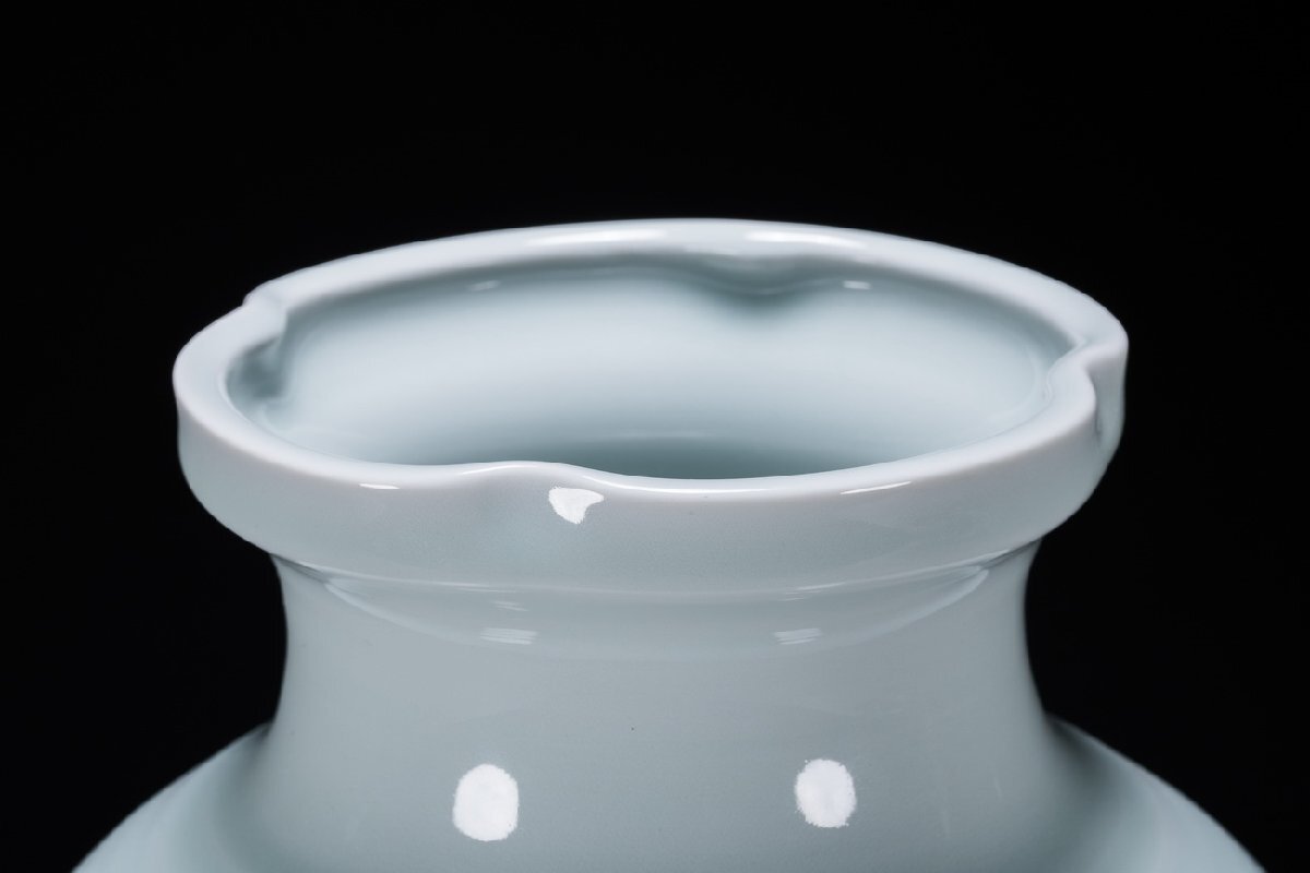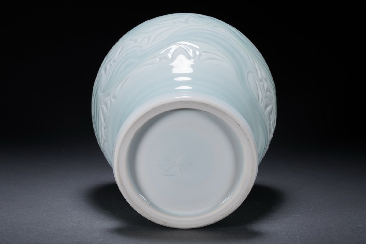 【雲錦】某有名オークション購入 時代物 青白磁 華蝶花生 渓山造 共箱 古置物 古美術 時代コレクション7L10-196S04