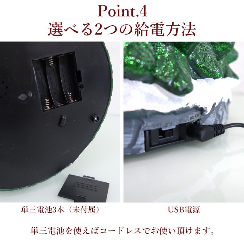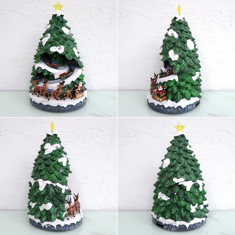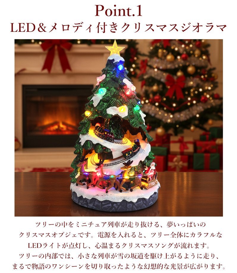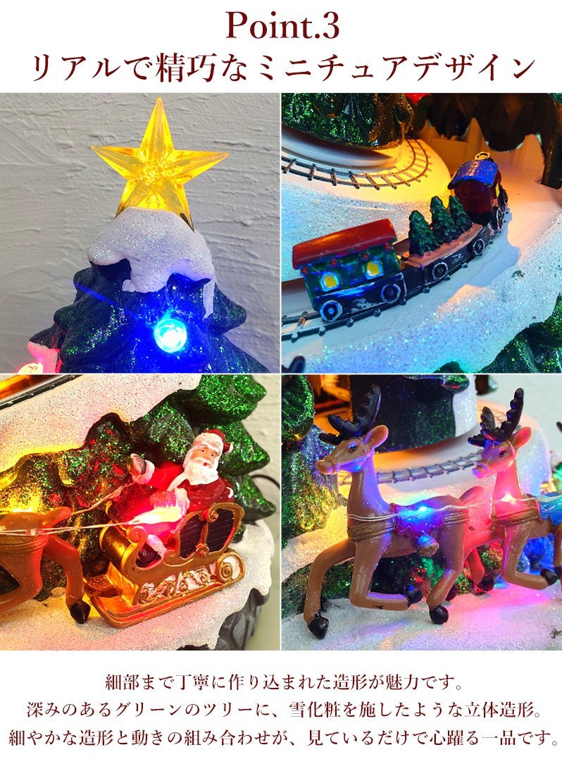 ![]() 光と音が彩る「クリスマストレインツリー」オブジェ ツリーの中をミニチュア列車が走り抜ける、夢いっぱいのクリスマスオブジェです。 電源を入れると、ツリー全体にカラフルなLEDライトが点灯し、心温まるクリスマスソングが流れます。 ツリーの内部では、小さな列車が雪の坂道を駆け上がるように走り、まるで物語のワンシーンを切り取ったような幻想的な光景が広がります。 深みのあるグリーンのツリーに、雪化粧を施したような立体造形。 上部の星から灯る光が列車やトナカイたちを優しく照らし、昼と夜で異なる雰囲気を楽しめます。 細やかな造形と動きの組み合わせが、見ているだけで心躍る一品です。 クリスマスの飾りつけや、インテリアのアクセントとしてもおすすめ。 眺めるたびに楽しい気分にさせてくれる、遊び心いっぱいのオブジェです。 クリスマスのインテリアや冬のディスプレイにぴったりな、心弾むミニチュアオブジェです。 給電方法は2つ、付属のUSBコードで使用する他、 単三電池3本でコードレスとしての使用も可能! 精巧に作られている為、ライトを点灯させずに 単体でオブジェとして使用しても存在感抜群です! ギフトなどにもおすすめです! ●動作パターン● ・未点灯 ・LED点灯(音楽なし) ・LED点灯(音楽あり) ※乾電池、USB出力用のアダプターは付属しておりません。 点灯時の様子は動画でご覧くださいませ。 動画はこちら ↓↓↓↓↓↓↓↓↓↓↓↓↓ こちらをクリック! 【商品詳細】 サイズ(約): 横幅22cm×高さ39cm×奥行22cm コード長さ(約):100cm 重量(約):1.1kg 素材:プラスチック・樹脂 【給電方法】 単三電池×3/USBコード |