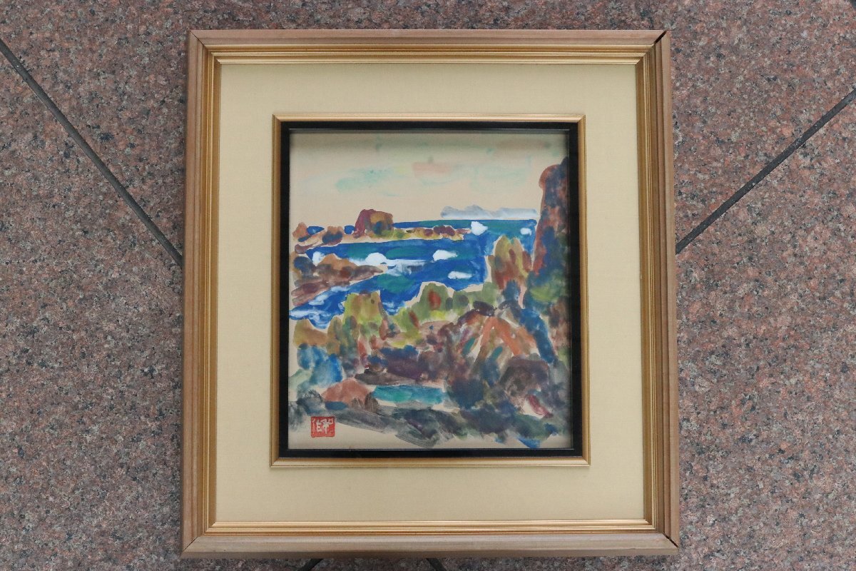 | 小林和作 「海」 油彩 油画 色紙画 額装 尾道 蔵出し 初だし 独立美術協会会員 芸術選奨文部大臣賞 | ||