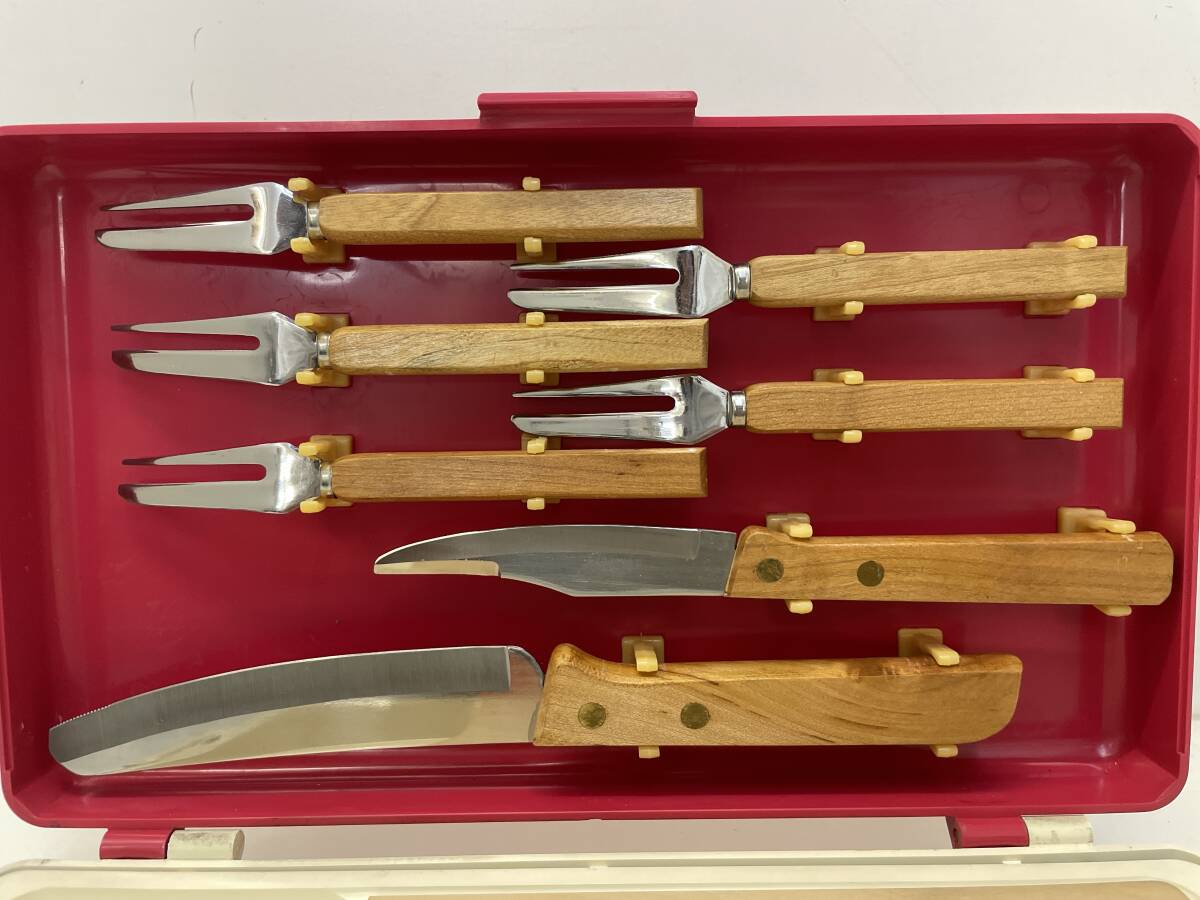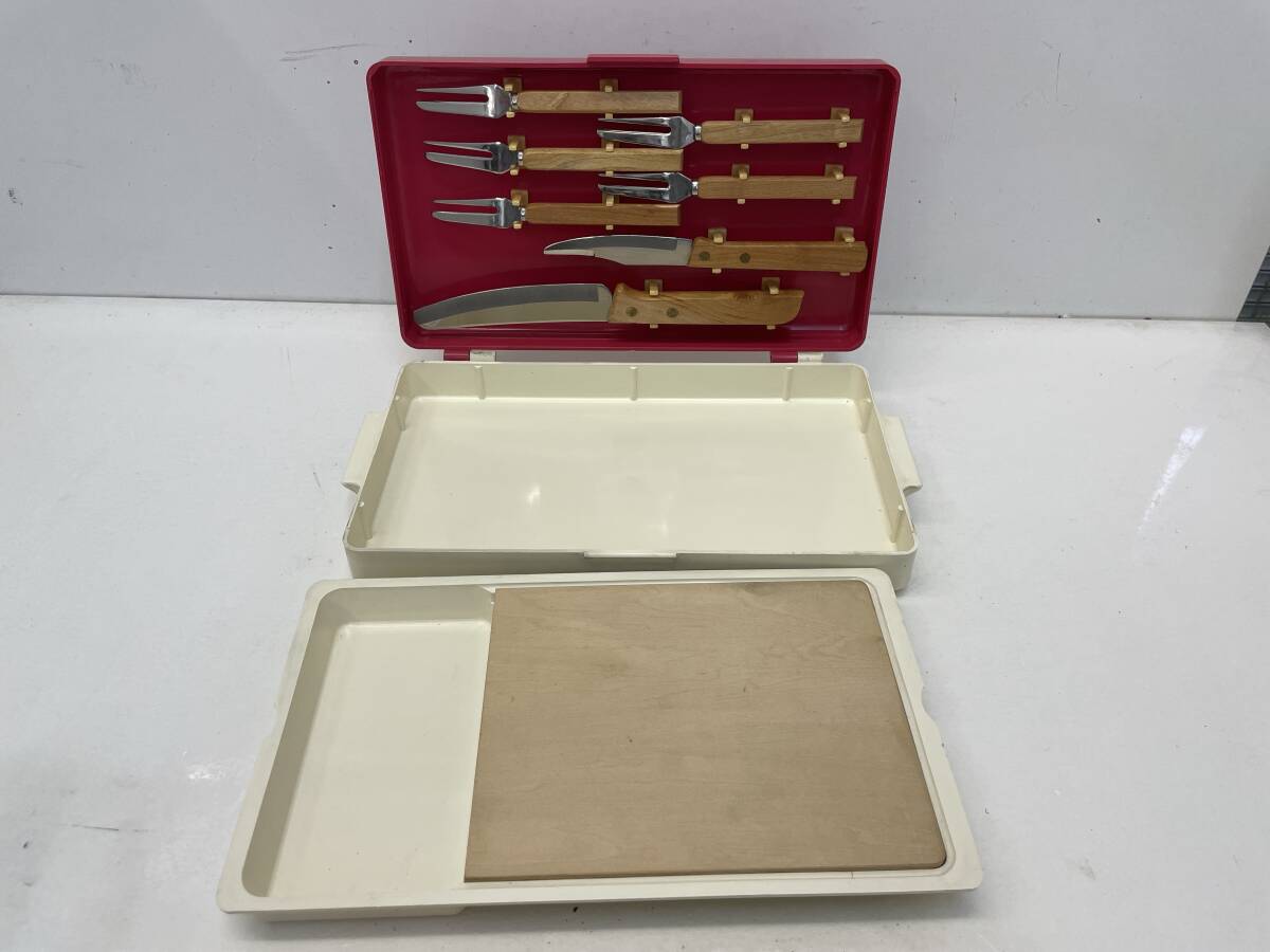| 【D-2-R91】 レトロ フォーク ナイフ まな板 セット アウトドア | ||