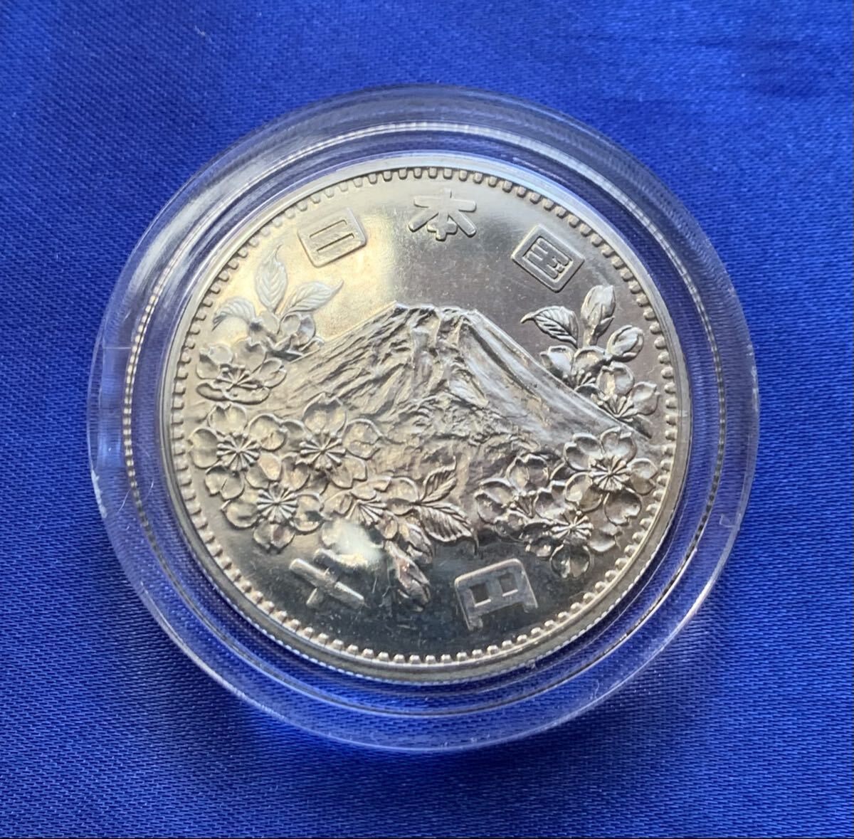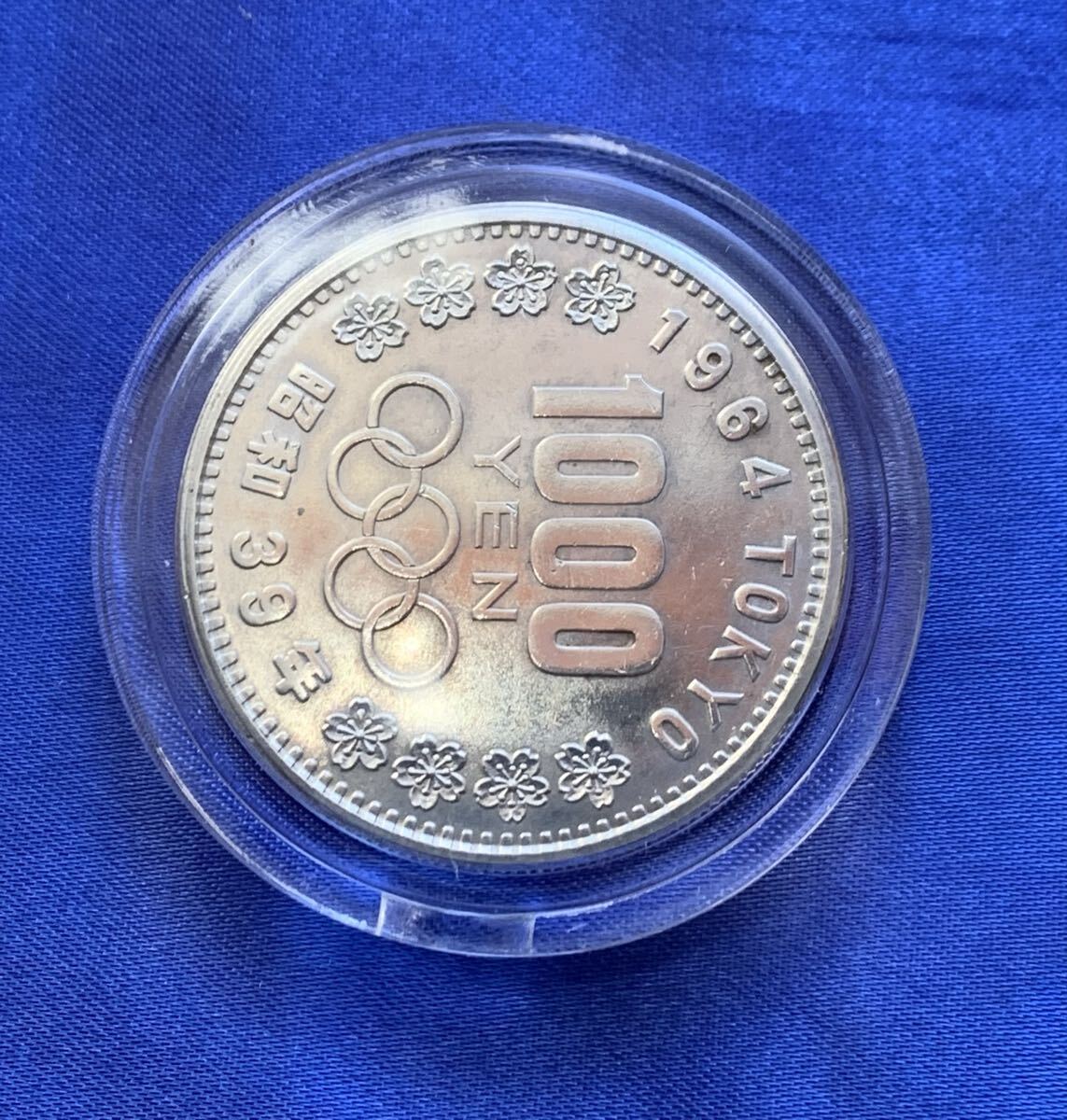 ◆東京オリンピック記念1000円銀貨 昭和39年 図 案:富士と桜 発行日:昭和39年10月(1964年) 直 径:35mm 品 位:銀925/銅75 量 目:20g |