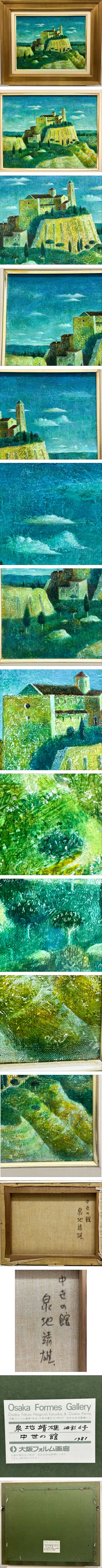 1円~真作 泉地靖雄 油彩6号「中世の館」1981年 額装 照明シール付き | |||