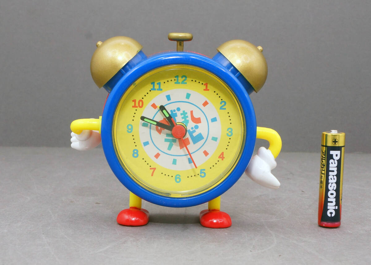 | 商品説明 | めざましテレビ めざまし君 目覚まし時計 ミニサイズ 単4電池1本にて動作確認(電池は付属致しません) 時計側から見て右腕を上げるとアラーム機能がON下げるとOFFになります。 アラーム音は、ピピピと鳴るだけです。 サイズ:W100㎜×D38㎜×H85㎜ 経年保管による傷・汚れ等のダメージが御座います。 |