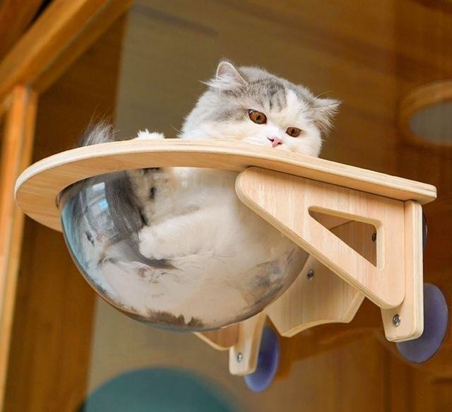 【プニプニの肉球まで見える】 360°見えるクリアボウルで、猫ちゃんの肉球まで見え,くつろぐ姿に、癒されること間違いなしです。 【簡単に取付可能】取付簡単な吸盤式。面倒は取付は、一切不要です。 【安定感が抜群】5つの強力吸盤でしっかり固定。猫ちゃんが乗っても、グラ付きがなく安心です。 【お外を眺められる】窓に設置できるので、お外に興味津々な猫ちゃんにピッタリです。退屈しがちな、お留守番にもおすすめです。 【可愛いクリアボウル】猫ちゃんがすっぽり収まる、可愛いボウル形状 ゆったりくつろげる、広々サイズです。 【ナチュラルデザイン】どんなお部屋にもよく馴染む、ナチュラルデザイン 木製枠とクリアボウルが相性抜群です。