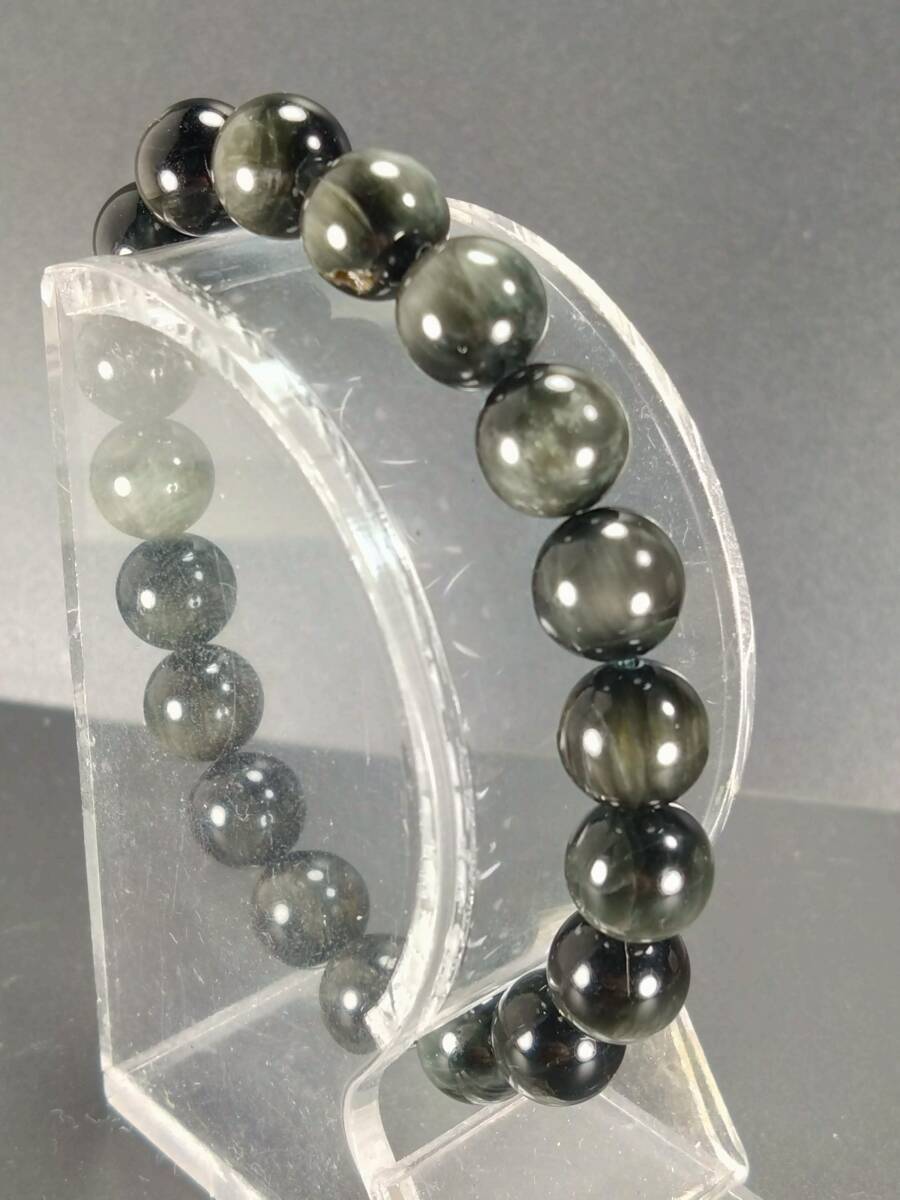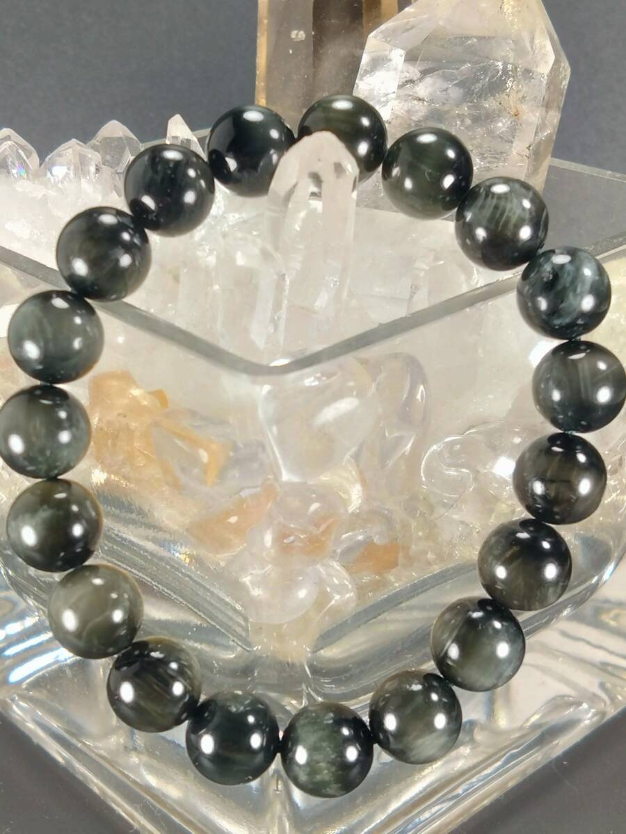 珍品ウルフアイ 約9.5mm玉19石 内径約15cm 外径21.2cmポリウレタンゴム使用ブレスレットのご紹介です 在庫処分特価にしておりますが新品です このブレスレットはちょっと大きめな凹みがありますが珍しいウルフアイとして楽しんでいただける逸品です ウルフアイとはホークスアイ(ブルータイガーアイ)から長い年月をかけて進化してタイガーアイになる途中での採取された鉱石です | 出价者 | 信用 | 价格 | 时间 |