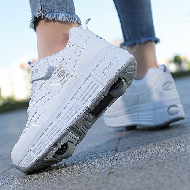 インラインスケート子供用ローラースケート子供普通の子供用運動靴として履けるキッズスニーカーベルクロ&シューレースローラースケート靴 【アッパー】:合成繊維 【インナー素材】:メッシュ 【ソール】:ゴム 【クローズ】:ベルクロ/レース 【ホイールタイプ】: 2輪 【ヒールの高さ】:2 cm 【デザイン】: アウトソールの隠し格納式ホイール。アウトソールは高品質のゴムでできており、耐久性があり、滑りません。ボタンを押すと、ホイールがポップアップします。ボタンを押し続けると、ホイールが押し戻されてロックされます。 かかとのボタンからローラーをポップアップして非表示にすることができます。ローラースケートと通常のスポーツシューズの両方を使用できます。これらのスケートはまた非常に快適でスタイリッシュです。