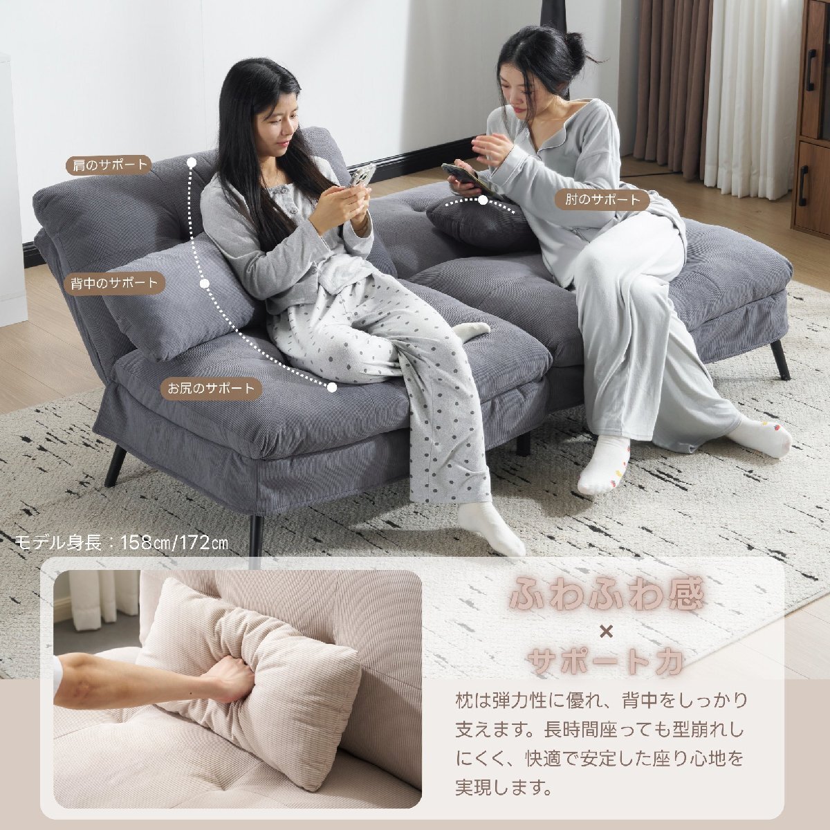 Product Name:ソファベッド ソファ ベッド 組立て簡単 事務室用 サロン用 来客対応 2人 リクライニングソファ 背もたれ6段階 省スペース 一人暮らし お手入れ簡単 コンパクト 幅182㎝ ふわふわ 枕付き 2WAY使用 取り外し可能な脚