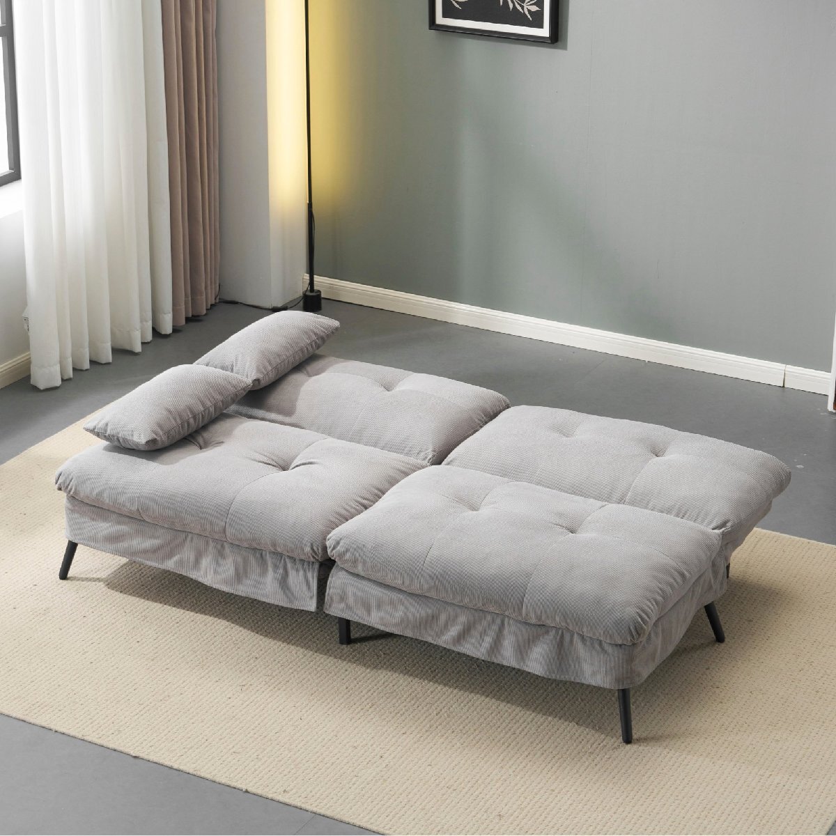 - 【柔軟な背もたれ調整】背もたれには 6 段階の調整機能があり、さまざまな使用ニーズに合わせて角度を正確に調整できます。背もたれを最も低い位置にすると、ソファは完全にベッドに変身し、一時的にお客様を泊める場合や、快適に横になってドラマを見たり本を読んだりする場合など、どんな状況にも簡単に対応でき、ソファとベッドの二重機能を実現し、空間の利用効率を大幅に向上させます。
