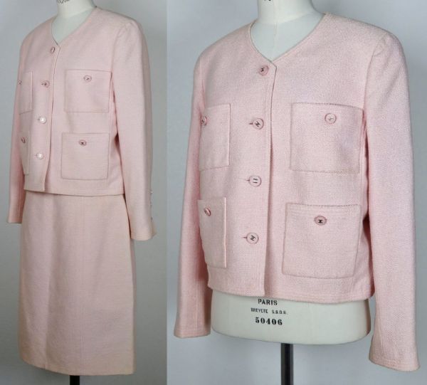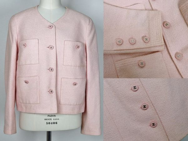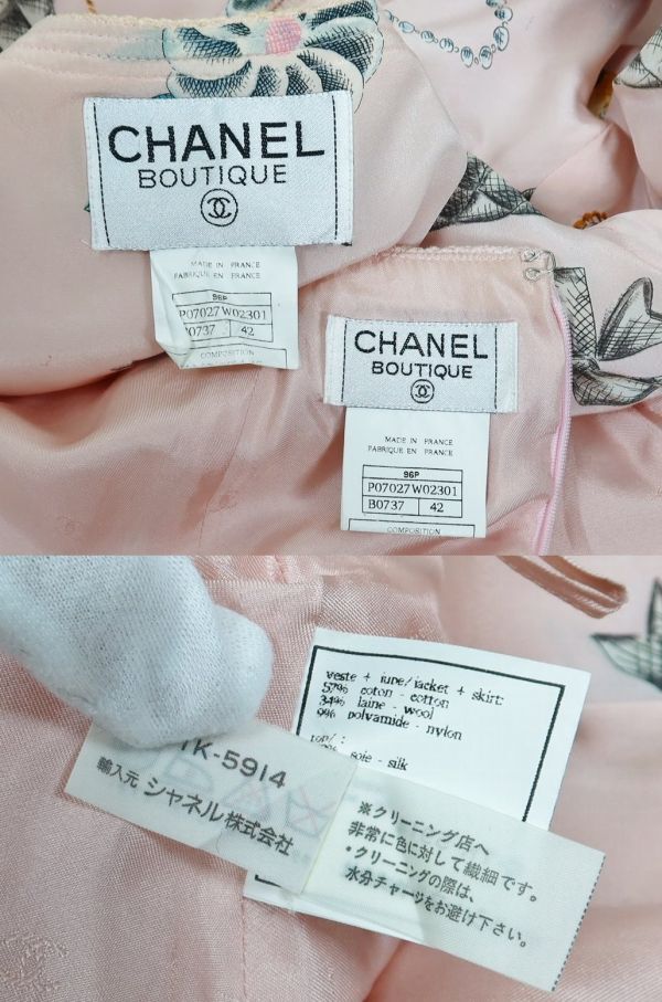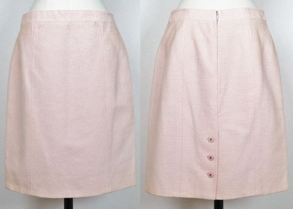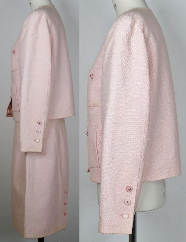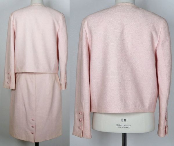 96P CHANEL tweed jacket skirt suit size 42 シャネル アイコンライニング ツイード ジャケット スカート スーツ <色> 画像を参考にお願いします <素材> 57%cotton 34%wool 9%nylon lining 100%silk <サイズ> 42 <寸法> 全長54(スカート)肩幅38.5(ジャケット)身幅50.5(ジャケット)着丈50.5(ジャケット)袖丈57(ジャケット)ウエスト72(スカート)(単位:㎝) <商品状態> 所々汚れや日焼けはございますが目立ったダメージの無いお品です。スカート裏地を解いた跡がございます。 <備考> 1996年春夏商品、フランス製、アイコンシルクライニング ■支払方法 YAHOOかんたん決済で落札価格+送料をお支払いください。 ■発送詳細 佐川急便、送料全国一律900円