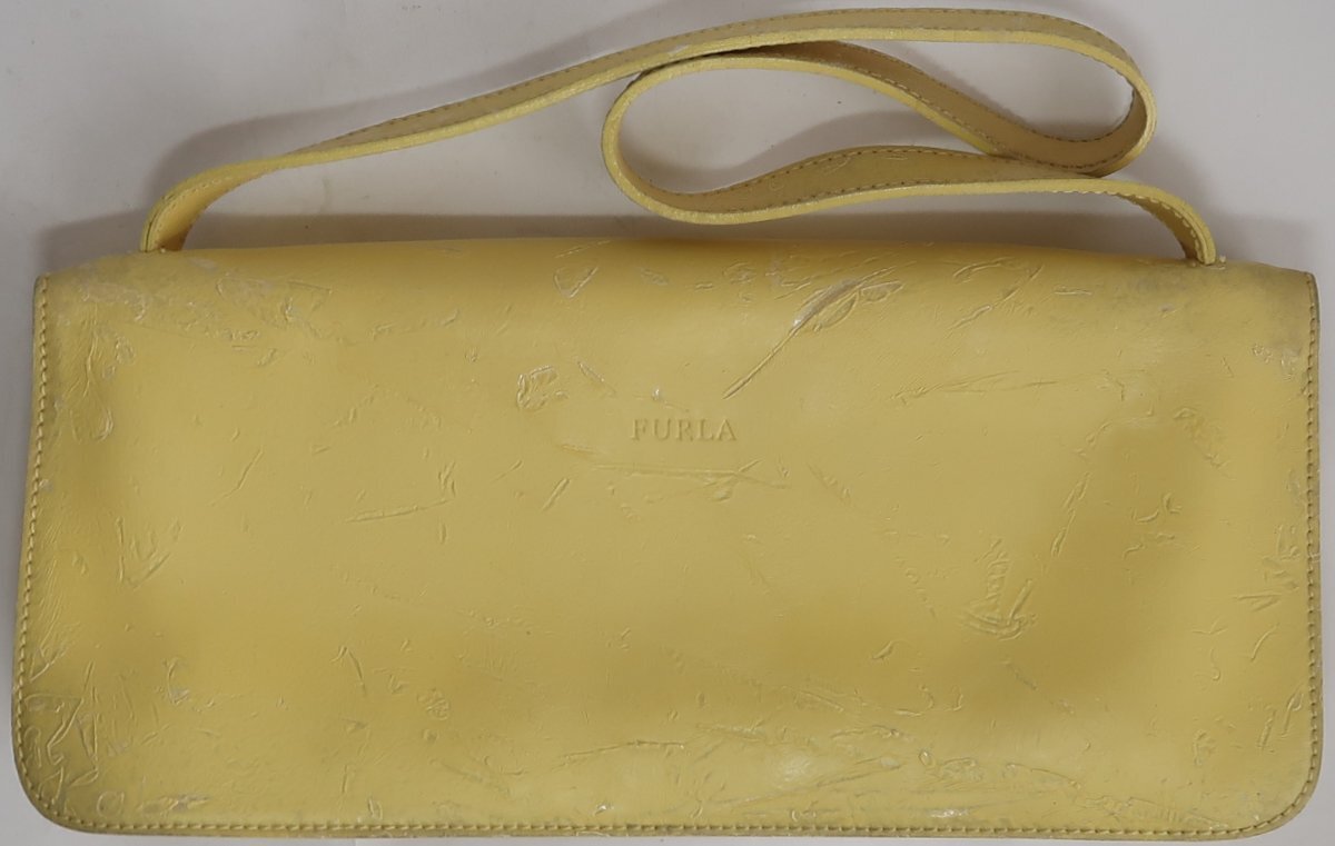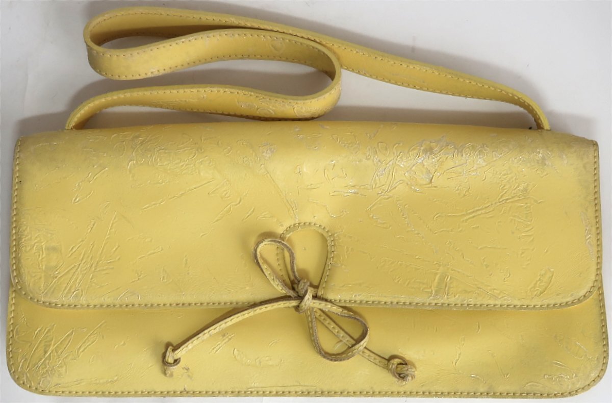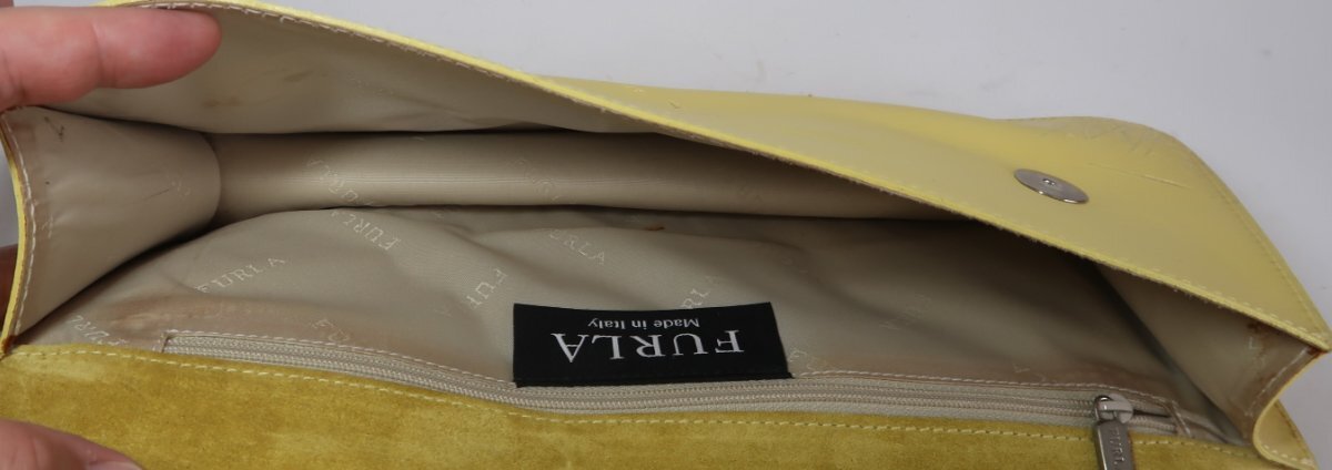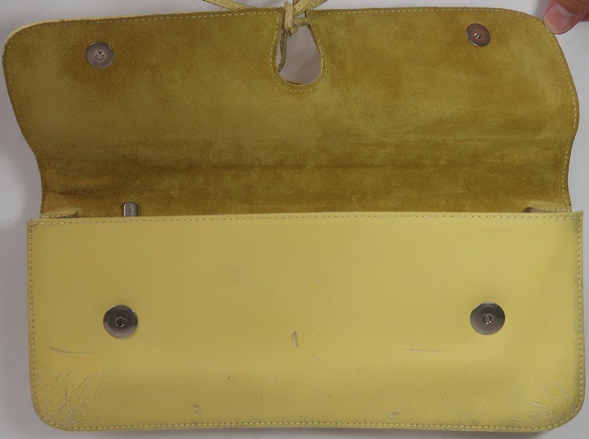 外見上は何かにあたった跡や擦れや汚れが多数あります。表面上の生地が劣化しております。バックの内側はバックの製造上でついたと思われる接着剤跡が有ります。バックのサイズはW31xH13XD5.5cmくらいです。ショルダーの長さは59cm位です。幅は1.9cm位です。