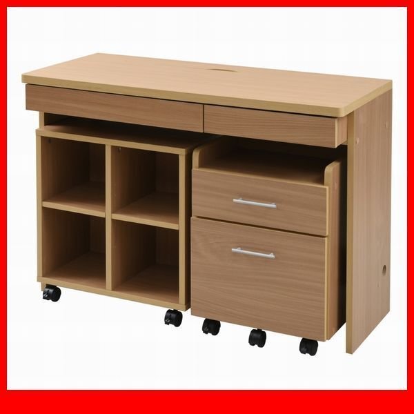 | 【カラー】 ダークブラウン、ナチュラル、ホワイト 【サイズ】 <外寸> デスク:幅100×奥行45×高さ72.5cm チェスト:幅40.5×奥行33×高さ54cm ラック:幅50×奥行29×高さ54cm <内寸> デスク引き出し小:幅31×奥行31.5×高さ5(有効6)cm デスク引き出し大:幅51×奥行31.5×高さ5(有効6)cm 配線コードボックス:幅96×奥行7.5×深さ6.5cm チェスト天板:幅37×奥行27×高さ5cm チェスト引き出し小:幅32×奥行25.5×高さ7.5(有効9.5)cm チェスト引き出し大:幅32×奥行25.5×高さ18(有効24.5)cm ラックオープン部左右共通:幅22×奥行27.5×高さ45cm 可動棚:幅22×奥行27×厚み1.5cm(3.2cmピッチ7穴) 【材質】 デスク天板:合成樹脂化粧合板(PVC) デスク本体/チェスト/ラック:プリント紙化粧合板 【耐荷重】 デスク天板:30kg以下 デスク引き出し:(小)4kg以下 (大)5kg以下 チェスト天板:5kg以下 チェスト引き出し:(小)5kg以下 (大)7kg以下 ラック天板:10kg以下 ラック可動棚:5kg以下 【生産国】 インドネシア 【梱包】2梱包でお届けします。 2-1 サイズ:104×39×14cm、重量:20.6kg 2-2 サイズ:53.5×33×29cm、重量:19.2kg 【その他】 ・チェスト:キャスター5個(うちストッパー付き2個) ・ラック:キャスター4個(うちストッパー付き2個) 【組み立て品】 お客様による組み立てが必要です。 【ご注意】 ・サイズ、重量は概算です。 ・商品カラーはご使用のモニターによって実際の明るさや色と異なって見える場合がございます。 |