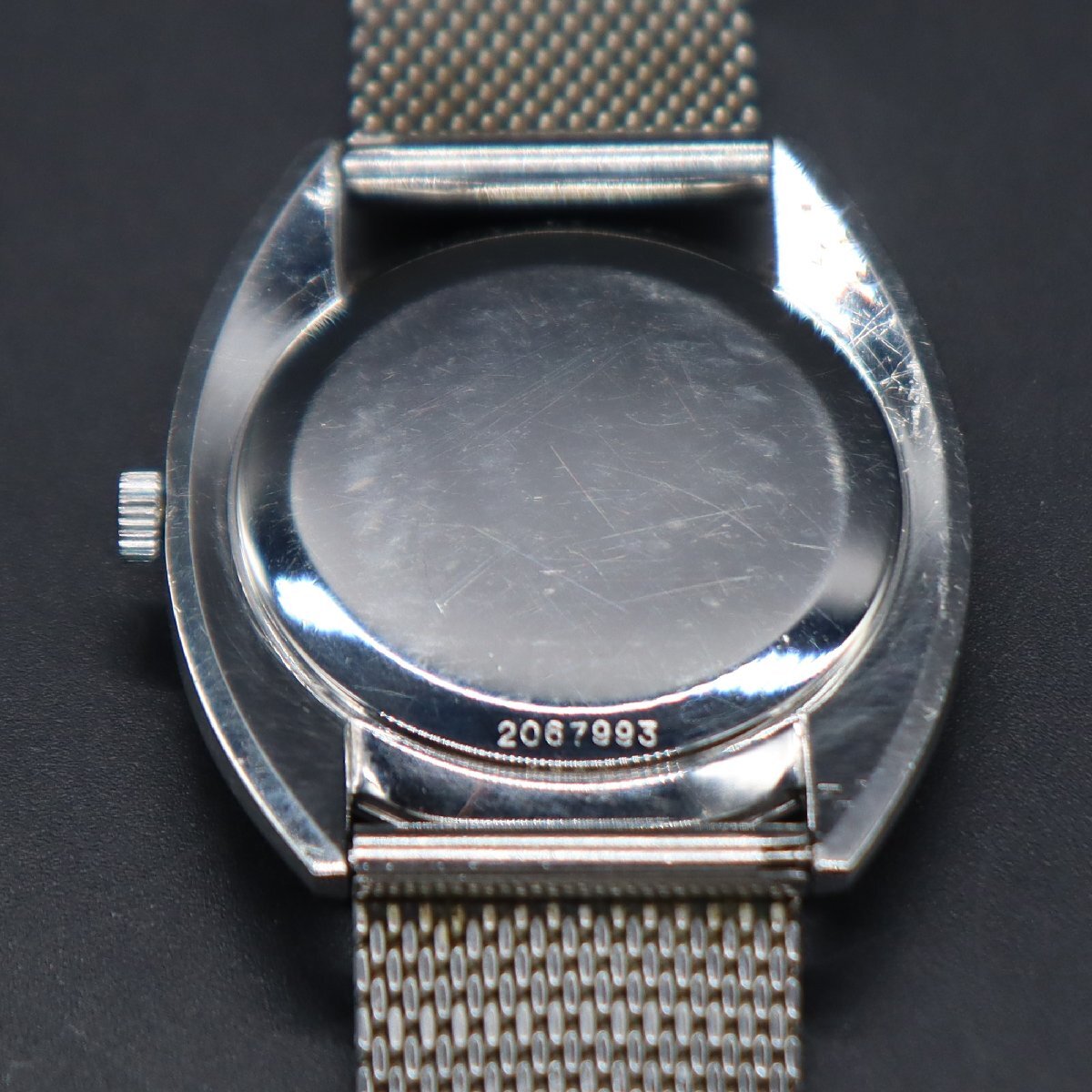 令和7年11月、当店専属の時計修理店/一級時計修理技能士にてOH済です。 OH後、平置きで24時間動作確認済み、±60秒以内で遅れなく稼働中です。 年代を経たアンティークウォッチではございますが、 この機会に是非、お手元でご愛用頂ければと思います。 リューズ巻止まりOK、一段引きで時間調整可能です。 ※アンティーク時計を長くお使いいただくため、 丁寧に、やさしく操作していただくようお願いいたします。 全体に経年のキズ・打痕、針に小汚れ、文字盤に微細なチリや シミなどの小傷みございますが、風防は爪にもかからない程度の 薄い線キズ程度で、目視で目立たず、視認性は良好です。 筆記体ロゴ・インデックス、消えなく良好です。 経年のわりに、きれいなお品物かと思います。 リューズ、巻き上げ軽快です。 裏蓋にスレございますが、刻印鮮明です。 ブレス、やや使用感ございますが、目立った汚れはなく比較的きれいです。 バックルのIWCロゴ、開閉良好です。 状態について、詳しくは画像にてご判断願います。 【Cal.403について】 オールドインターとしては実質最後の自社ムーブメント、 キャリバー403搭載の個体です。 Cal.403はCal.89を薄型化した後継機で、 名機でありながらも70年代のクォーツの勢いに押され、 生産個数の大変少なかった機械です。 |