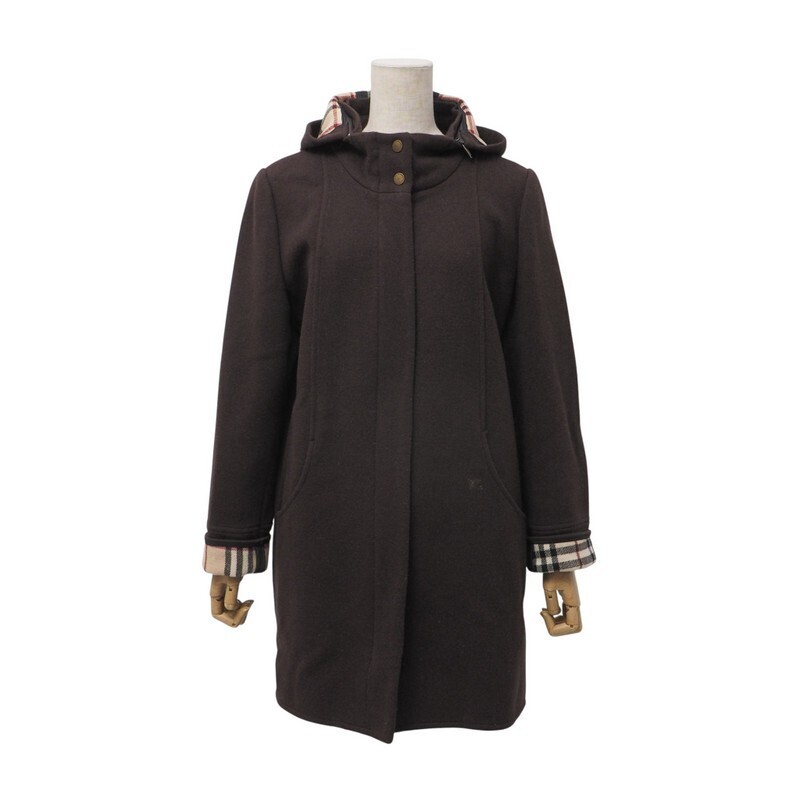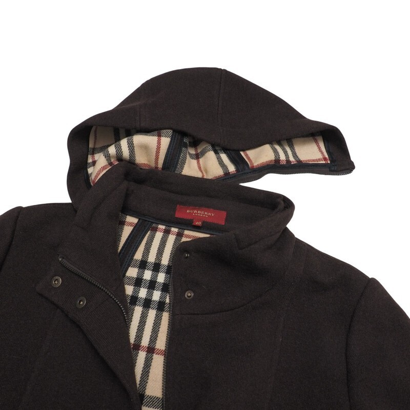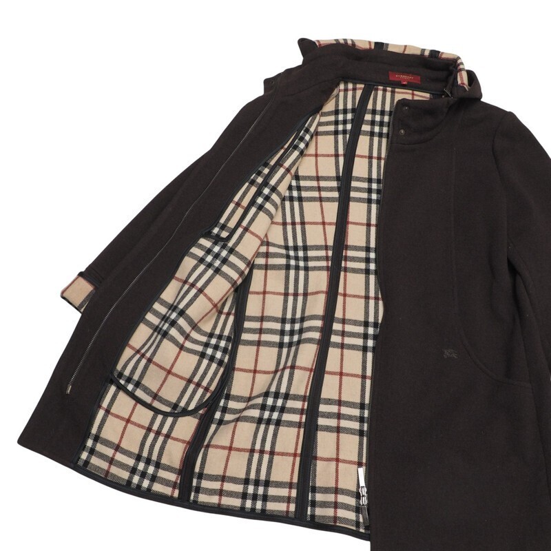 | STJ5750△バーバリーロンドン BURBERRY LONDON ウール フーデットコート 内:チェック柄 フード脱着可 ダークブラウン系 40/S-M相当*vintage | |||
