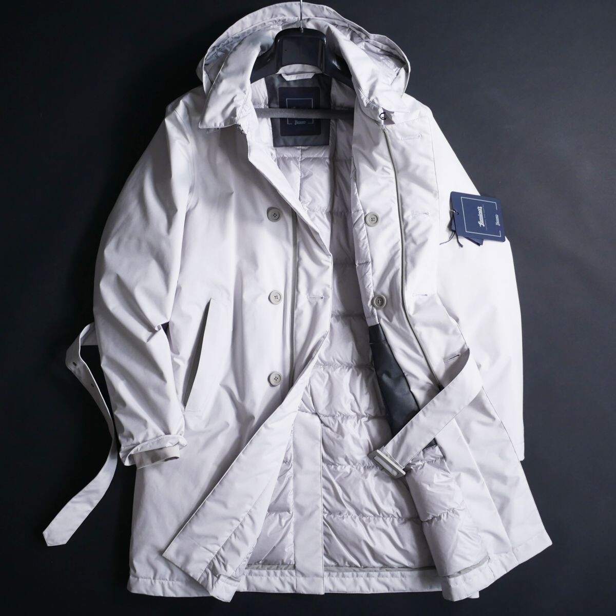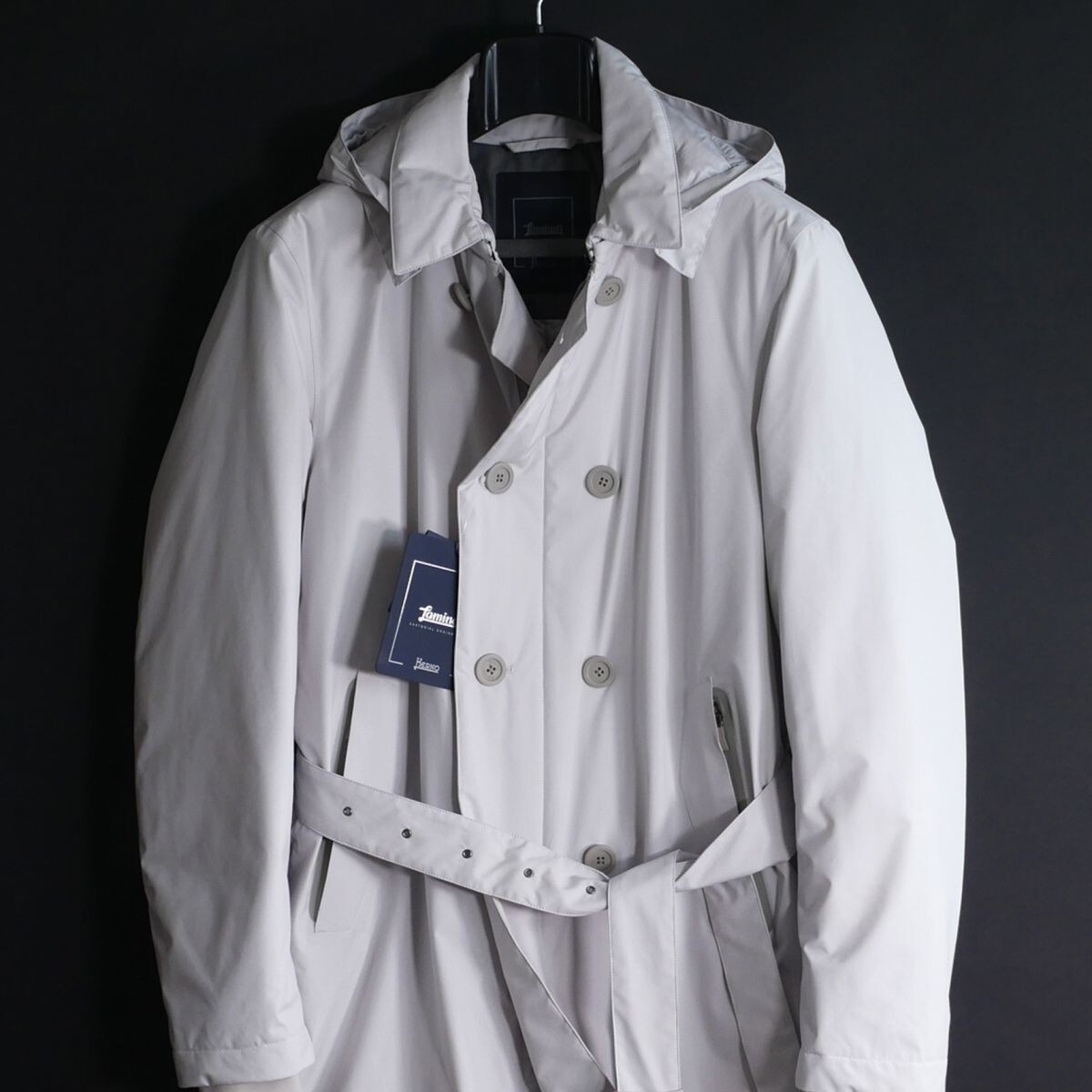 ●イタリアのプレミアムラグジュアリーブランド「HERNO(ヘルノ)」より、GORE-TEX仕様のグースダウントレンチコートでございます。ブランドを象徴する洗練されたクラシックスタイルに、先進の機能素材を融合させた、まさに“モダンラグジュアリー”を体現する逸品です。外側はスタイリッシュなトレンチで、内側は真冬も暖かな最高峰のヘルノのグースダウンとなります、最強のコンビです。定価ご購入でも価値のある「名品」かと思います。こちら一点のみ入荷です。 ●モデルは、HERNOのハイエンドライン「Laminar(ラミナー)」コレクション。サルトリアル(仕立て服)の美学を追求しながら、GORE-TEXファブリクスによる防風・防水・透湿性能を兼ね備え、都市生活から出張・旅行まで、あらゆるシーンで活躍する一着となっております。 ●軽量ながらも「真冬も暖かな」保温性に優れたグースダウンを中綿に使用。内側はふっくらとしたダウンの膨らみで、外側はスマートなシルエットに仕上げられており、着ぶくれ感なくエレガントに着こなせます。ダブルブレストの構築的なデザインに、共布ベルトを配したクラシックな佇まいが印象的です。スマートながらも、冬も暖かなトレンチコートです。 ●背面にはガンフラップとセンターベントを備え、ディテールの美しさはまさにイタリアンテーラリングの真骨頂。取り外し可能なフード付きで、天候やスタイリングに応じて自在にアレンジしていただけます。袖口の内リブ構造が防寒性を高め、細部まで緻密に設計された仕立てとなっております。 ●HERNOが誇る機能的エレガンスを体現したコートは、ビジネスからカジュアルまで幅広く対応。ラグジュアリーな素材感とスマートなデザインが、冬のスタイルを格上げいたします。 ●フロントダブルジップ。表内ジップポケットあり。ジャージ生地をあしらった内袖口。裏生地付。フードは着脱式。後ろ裾スリット。共布ベルト付、バックルは取り外し可能です。ケープドバックスタイル。スペアボタン付。 ●色:ややグレーがかったようなビアンコ系 ●定価:231,000円 ●素材: 外側:ポリエステル 100%*樹脂素材コーティング(GORE-TEX) 詰め物:グースダウン(ダウン 80%/フェザー 20%) 裏生地:ポリアミド100% 内袖口ジャージー生地:ポリアミド72% エラスタン28% ●サイズ:50 *日本サイズ概ねLサイズ辺りとなりますが、下記詳細サイズもご確認の上、よろしくお願いいたします。 ●詳細サイズ(cm)置いた状態で: 肩幅:46.5(右肩端~左肩端の直線距離) 身幅:59(右脇下~左脇下の直線距離) 袖丈:65.5(肩の縫い目~袖先) 着丈:94(襟の付け根~裾まで。襟の幅を含んでいません) 詳細サイズご参考 ※大よその採寸となります。 ※お品物はタイトルにございますもののみとなり、着合わせのお洋服や小物などがございましても、それらは含まれません。 ※素材の特性上、多少のことはご容赦くださいませ。 ※ご質問は、必ずご入札前にお願いいたします。(ご入札後、ご落札後の取引ナビからのご質問はお避け下さい) ☆☆☆ご連絡・お支払い(かんたん決済)☆☆☆ ご落札後24時間以内に、取引ナビからご連絡(お名前・ご住所全て。*サイズ選択いただけるオークションはサイズのご連絡も含め)・かんたん決済可能な方。 *銀行振込の場合は翌営業日、コンビニ決済はご落札後2日目の午前中まで、お支払いをお済ませ下さいませ。 電話応対は、一切致しておりません。取引ナビをご利用下さい。 ☆☆☆受け取り連絡☆☆☆ 製品到着後24時間以内。*出来る限り、到着日当日に受け取り連絡頂きましたら幸いです。 *配達日指定ご希望の際は、ご落札後、最長4日以内に「受取連絡」ができるようお願いします。(北海道・沖縄・離島の方は5日以内) *特別に記載をしました際には、そちらを優先させていただきます。 ☆☆☆同日に2点以上のご落札の場合☆☆☆ 「まとめて取引」を、最初にご選択ください。 *「まとめて取引」を、お届け情報などご入力前にご選択ください。同梱発送となり、一品分の送料のみとなります。 *「まとめて取引」をご選択されなかった場合、出品者側では送料訂正できませんので、予めご了承くださいませ。 新規IDの方は、こちらを必ずご覧くださいませ ☆☆☆ご入札及びご落札のキャンセルはしていただけません☆☆☆ ![]() 【お支払い】 合計金額 = ご落札価格 + 送料 ◆かんたん決済(ご落札後24時間以内に支払い手続きを完了ください。) *2点以上同日ご落札の場合は、『まとめて取引』をお選びください。 *領収書がご必要の際:ご落札後Eメールアドレスを、取引メッセージにてお知らせ下さい。電子領収書をEメールに添付してお送り致します。 !かんたん決済は、!の商品代金の支払い、受け取りを簡単安心に行える決済サービスです。ご落札者様は、クレジットカード、コンビニ支払い、銀行振込はもちろん、!マネー、Tポイントも利用できるお支払い方法です。 【発送】 発送は、クロネコ宅急便(元払い)のみとなります。迅速な対応を心掛け