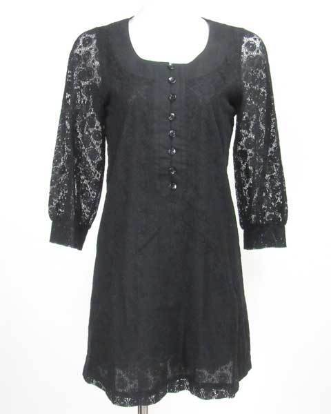| アンシャントマン 黒 長袖 レース ワンピース 38 |