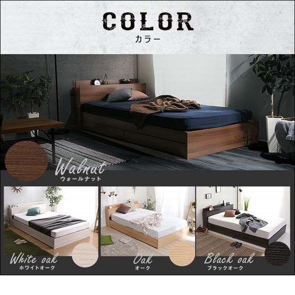 【ポイント】 衣類や寝具などをたっぷり収納できる引き出し付きです。 タブレットも立て掛けられる宮棚・2口コンセント付きです。 高級感のある色味をお楽しみ頂けます。 |