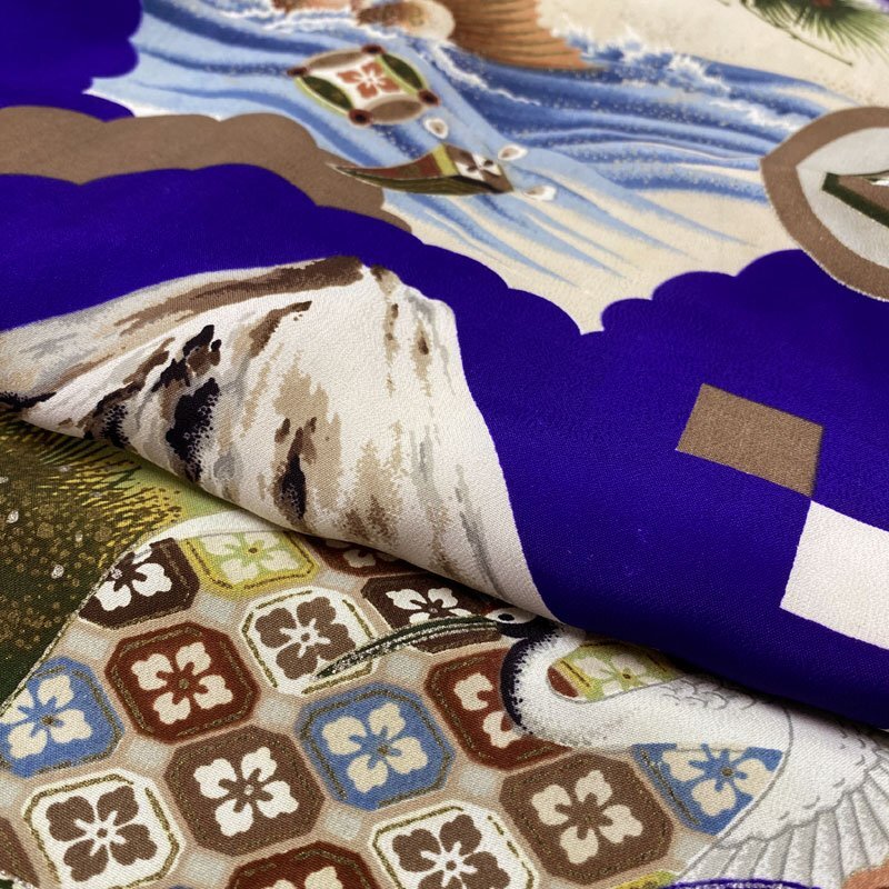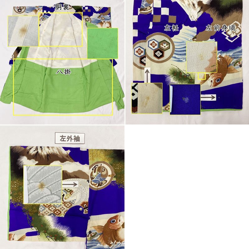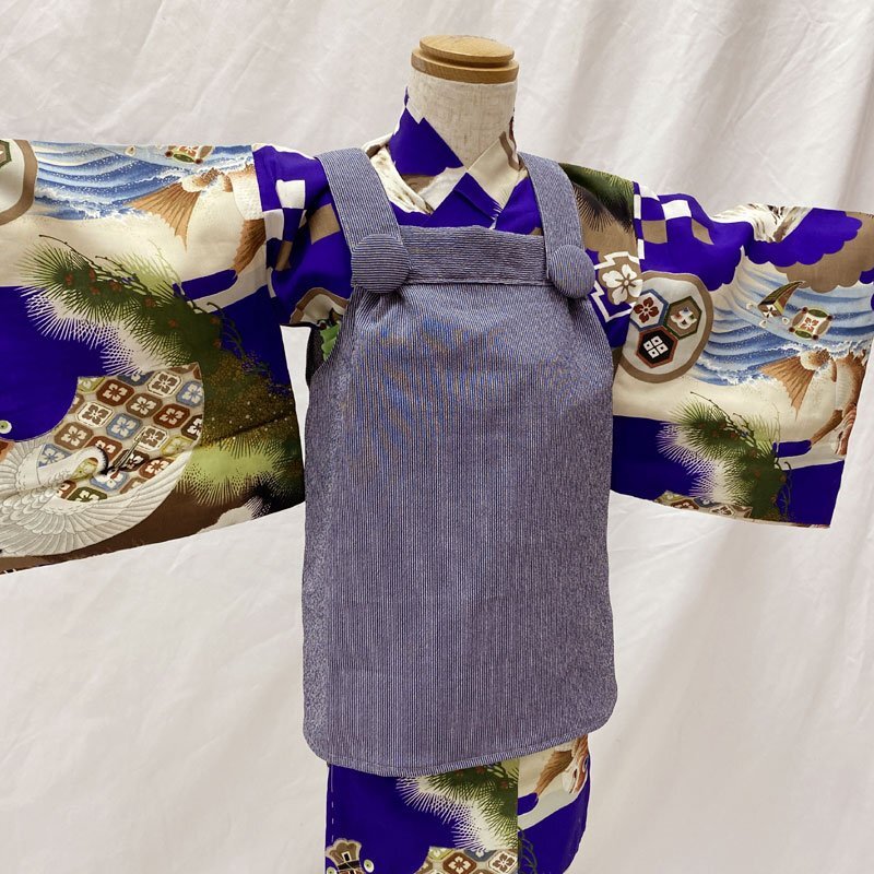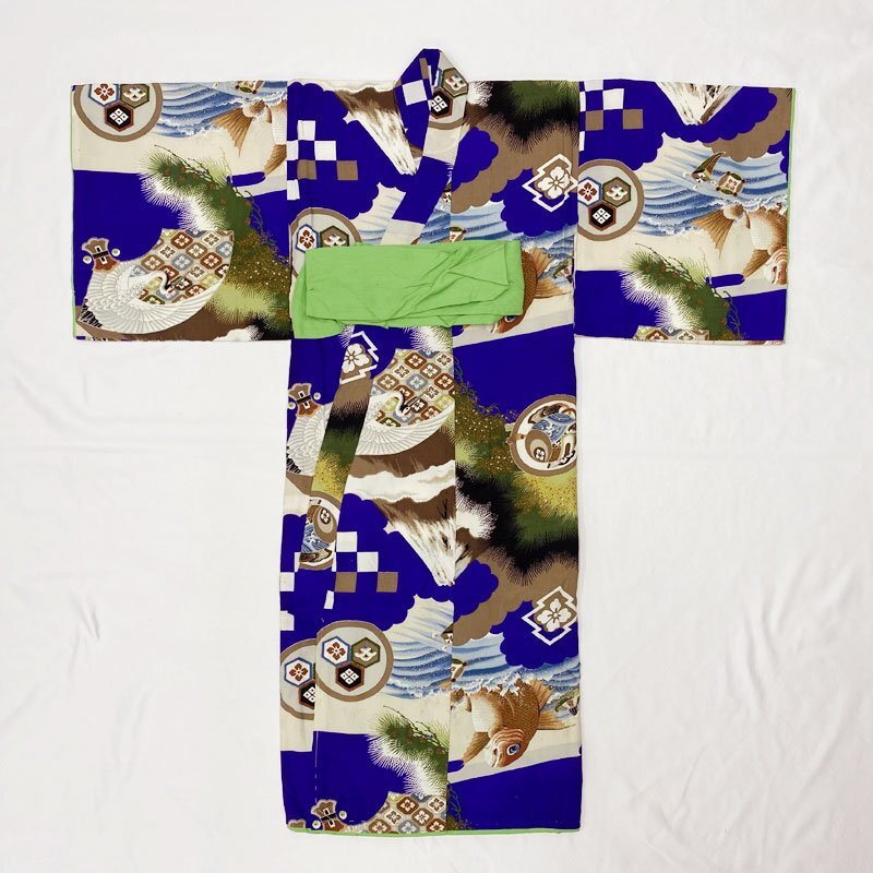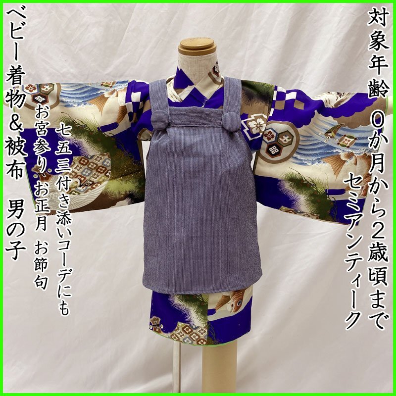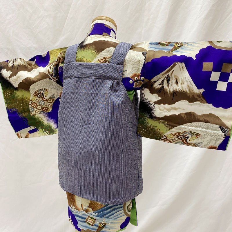 | ◎ベビー着物&被布 男児 お宮参り セミアンティーク 総柄 鯛◎ (No.fd) こちらの商品は、着物と被布のセットです。群青色の地に、鯛、扇、富士、松などの文様が素敵な男の子のセミアンティークのベビー着物です。 お宮参りの掛け着の下やお正月、お節句などにもご利用いただけます。体型にもよりますが、2歳前後までご利用いただけます。 (着物)一つ身です。画像以外にも薄いシミがところどころに、内側胴裏八掛にシミや薄いアクがございますが、近くで見ないとわからない程度のものや、内側なので見えません。セミアンティークの風合いとお考え下さい。 (でんち)着なくなった中古品の化繊着物をリメイクしたハンドメイド品です。中綿を入れておりません。ハンドメイド品ですので、完璧を求める方はご遠慮ください。 【表地素材】(着物)正絹、(被布)化繊 【色】群青色 *モニターによって色味は実際と異なる場合がございます。 【サイズ】(着物) 裄:39.4cm、肩上げ幅:-cm、丈(肩から):82cm、腰上げ幅:-cm、前幅:14.6cm、後幅:16.1cm *素人採寸のため、多少の誤差はご容赦ください。 七五三後は、お正月やお節句などにもいいですよ。お求め安い価格での出品ですので、いかがでしょうか? | |