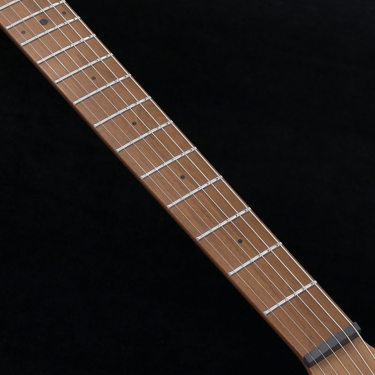 Thicket Standardは、トラディショナルな雰囲気を持たせたオリジナルのボディー・デザインで、次世代のプレイヤーに向けたモデルです。 ボディーはアルダーを使用し、エルボー・カットやバック・カット、ストレスのないハイフレットへのアクセスを可能にしたヒール・カット、バック側カッタウェイのスクープ・カットを採用し、演奏性の高いデザインです。 ネックはローステッド・メイプルを使用し、プレート・レスの4点留めボルト-オン方式でボディーにジョイントされています。 フィンガーボードもローステッド・メイプルで、ブラック・ドット・ポジション・マークを配置しています。 フレットには硬質なステンレスを採用し、フィンガーボード・エンドにはトラスロッドのアジャスト・ホイールを備えています。 さらに、サイド・ポジションマークは、暗いステージの視認性を高める高性能蓄光ドット・ポジション・マーク「Luminlay(ルミンレイ)」を埋め込んでいます。 ピックアップは、ブリッジ側とネック側共に米国製オリジナル・ピックアップと同じスペックで製造されたFeralハムバッカーをマウントし、1ヴォリューム、コイルタップ・スイッチを兼ねたトーン、3ウェイ・ピックアップ・セレクター・スイッチを装備しています。 スタンダード・シリーズのFeralハムバッカーは厚みのあるアルニコVマグネットを使用し、高い出力の実現と同時に深みときめ細かさを持ち合わせ、Feral(=野性的な、凶暴な)の名の通りヘヴィーなサウンドにマッチしたピックアップです。 チューナーはチューニングの安定性が高いグローバー・ロッキングを搭載しています。 ブリッジはストリング・スルーボディー仕様のヒップショット・フィックスド・ブリッジを搭載しています。 ボディー・カラーは、グロス・パステル・グリーンです。 持ち運びに便利なギグバッグが付属します。 ●ヘッドには、グローバーのロッキング・チューナーを採用 ●硬質なステンレス・フレット、サイド・ポジション・マークは高性能蓄光素材「Luminlay(ルミンレイ)」を採用 ●ヒールレス&カッタウェイ裏側のスクープ・カット ●ヒップショット・フィックスド・ブリッジは、ブラス・ベース・プレートにステンレス・サドルの仕様 ●独自開発のFeralハムバッカーを2基搭載 ●コイルタップ・スイッチを兼ねたトーン・コントロール ================== この商品はアウトレット・モデルです。 アウトレット・モデルとは、キズ、塗装むら、パーツに錆びやくもりなどがある商品のことを意味します。 従って、これらに起因する修理につきましては、お客様のご要望により有償修理とさせていただきます。 但し、楽器本来の性能やサウンドにつきましては特に問題のない商品ですので、 その他の修理(例:「音が出なくなった」「音がつまる」等)につきましては、保証規定に従いまして修理させていただきます。 ================== 通常販売価格 ¥189,200(税込) ⇒ セール新品特価¥85,800(税込) SPEC ■Body: Alder ■Neck: Roasted Maple, Comfy C Shape ■Neck Joint: Bolt-on ■Fingerboard: Roasted Maple [16"(406.4mm) radius] ■Position Markers: Black Dot Inlays ■Frets: 22 Medium Jumbo Stainless Steel ■Scale Length: 25.5"(648mm) ■Side Dots: Luminlay ■Controls: One Volume, One Tone w/ Push Pull for Coil Tap, 3 way Toggle Switch ■Knobs: Metal Dome ■Pickups: Feral Humbucker Set ■Tuners: Grover Locking 18:1 ratio ■Nut: Graphite Nut [1 11/16"(42.86mm) width] ■Bridge: Hipshot Fixed Bridge (String Through Design) ■Color: Gloss Pastel Green ■Case: Gigbag |