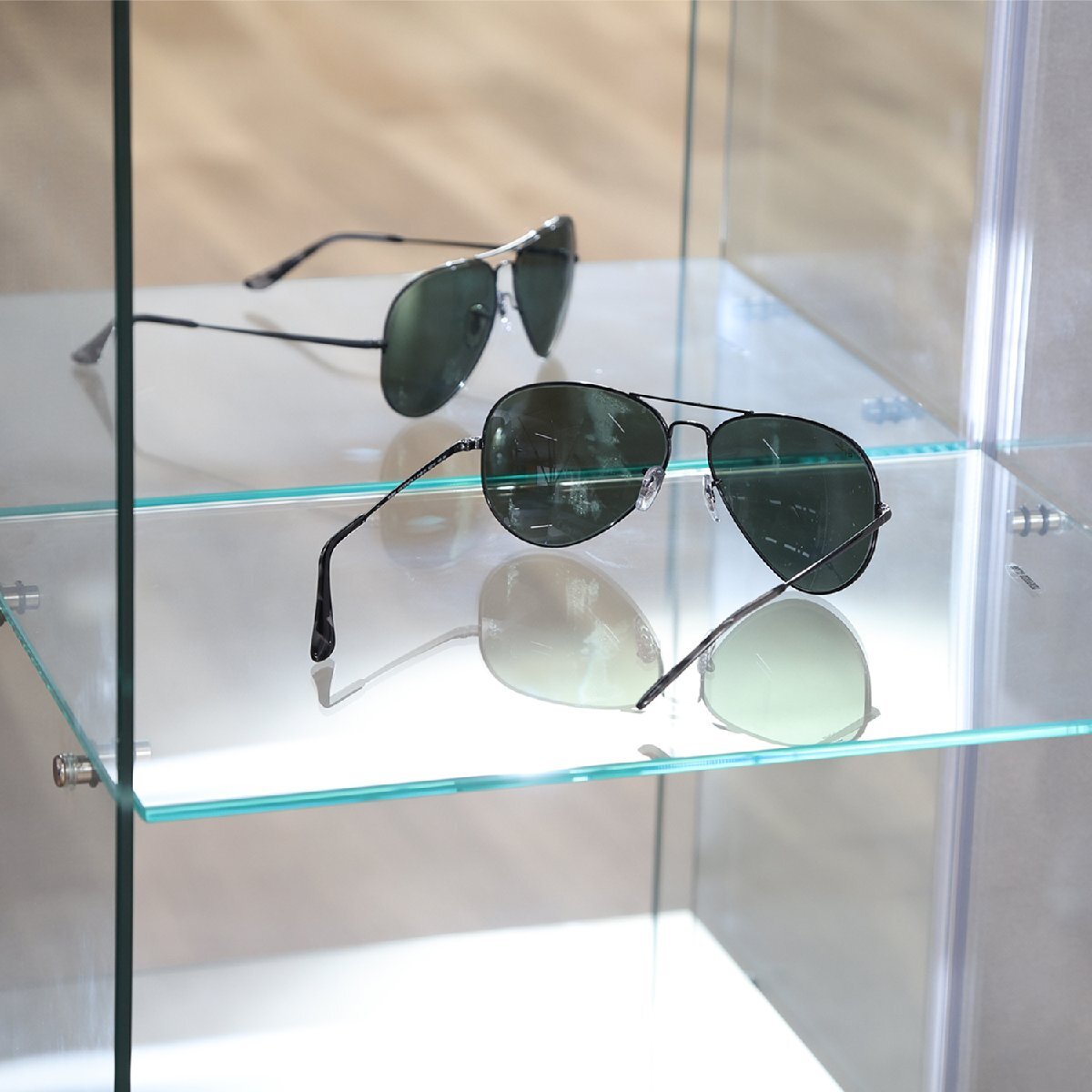 | 素 材 | 構造部材(天板/地板):プリント紙化粧繊維板 構造部材(扉板/側板/棚板):強化ガラス 背面:ミラー仕上げ |