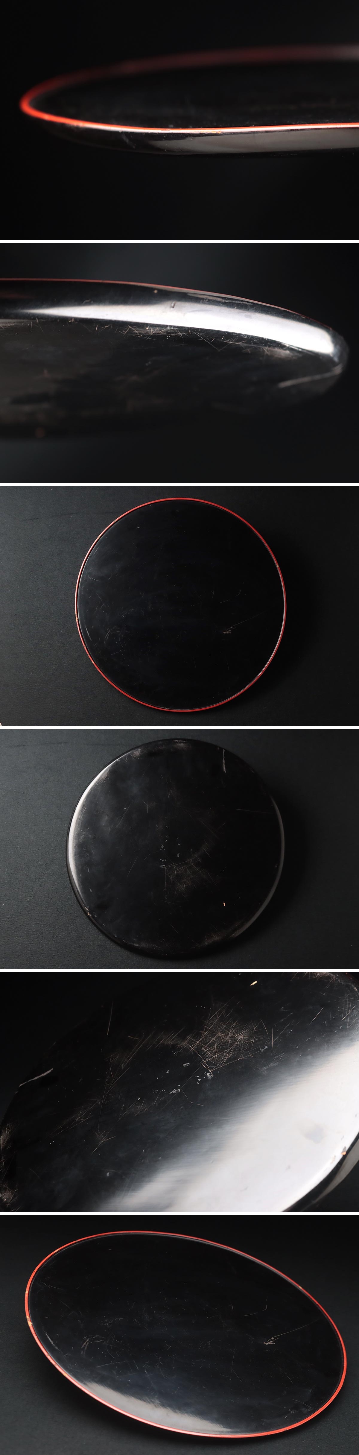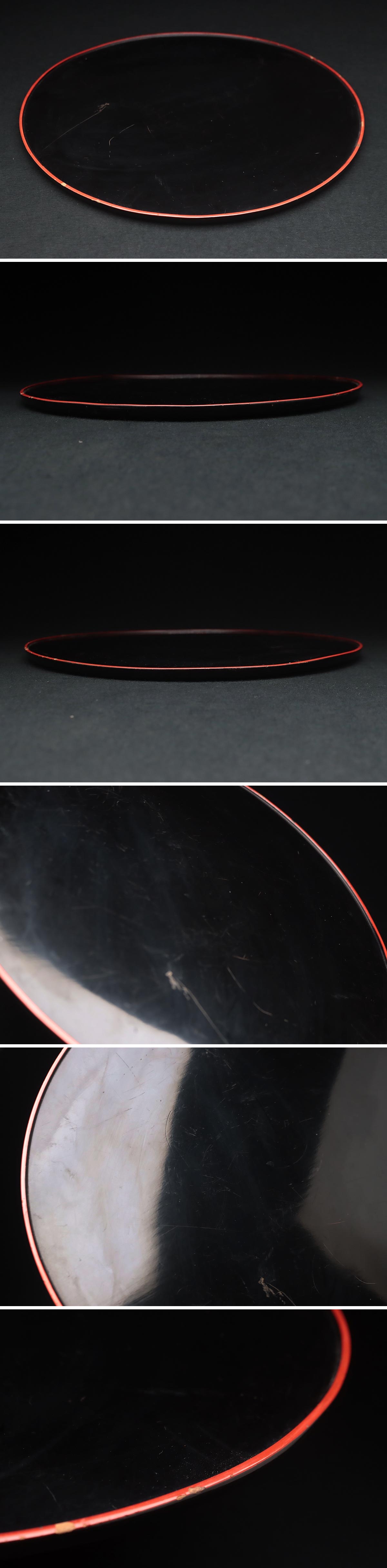 | ◆ 時代漆器 朱縁 黒漆塗 丸盆 径34cm・煎茶盆・圓茶盤・漆丸茶盆 茶具 煎茶道具 漆工芸 古美術 ◆
