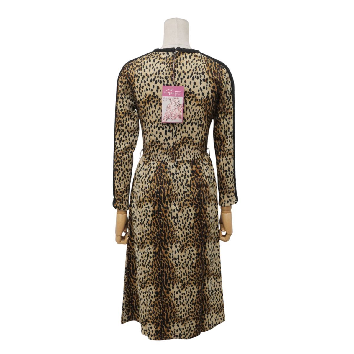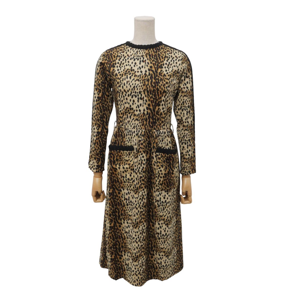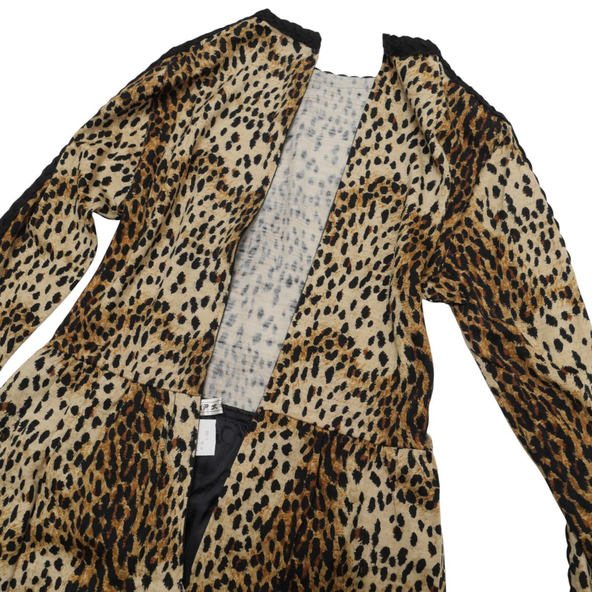 | TJ6647》伊太利屋 イタリヤ ITALIYA ワンピース 長袖 レオパード柄 ロング丈 ウール サイズ7 ブラック×ベージュ×ブラウン系 | |||