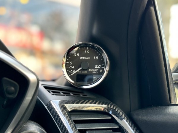 | 取付方法 | ・純正ピラーパネルに両面テープで貼り付け ・できる限りメーターを外側に設置する設計の為 メーターの奥行きの逃げ加工とメーター配線や 固定用に純正ピラーパネルの一部をカット加工が必要です |