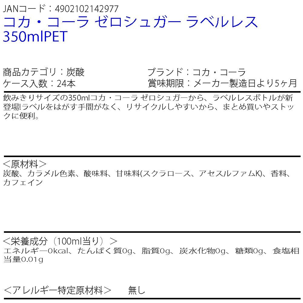 | 商品名 | コカ・コーラ ゼロシュガー ラベルレス 350mlPET | |