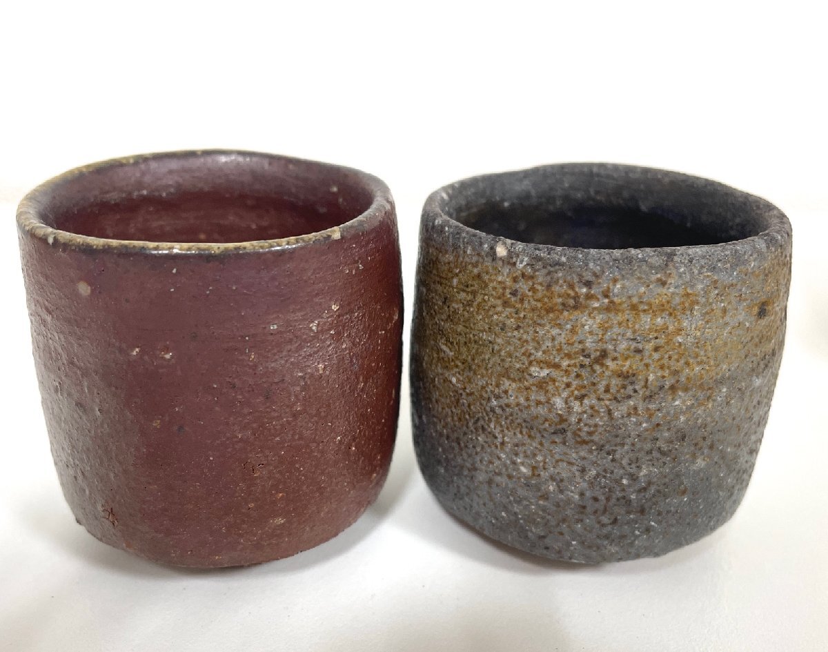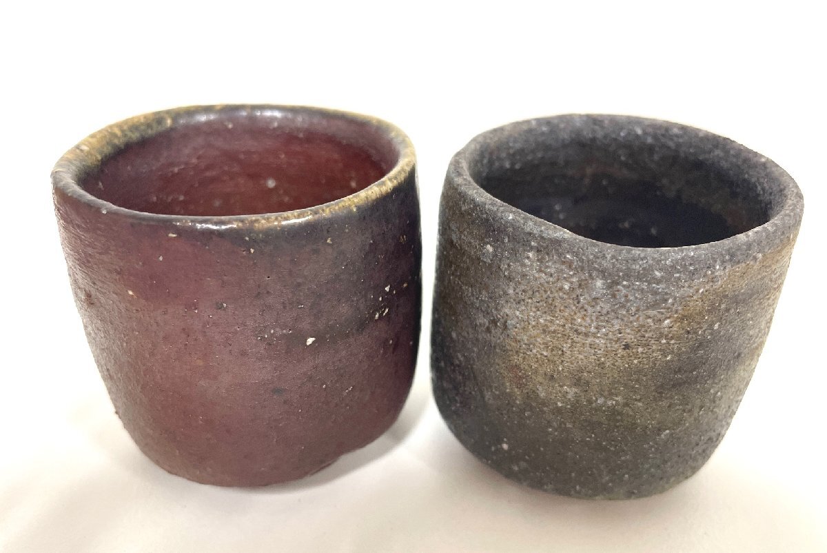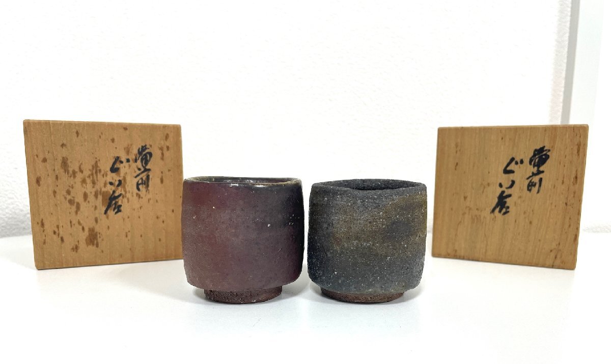 | 【L37616】備前焼 森陶山 備前ぐい呑 備前酒呑 夫婦 2点セット 直径約5,3cm 高さ約5,5cm 共箱付き 中古品 経年保管品 |