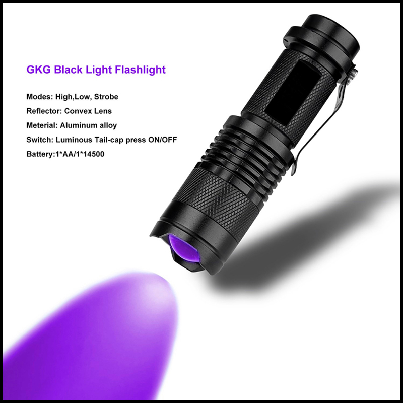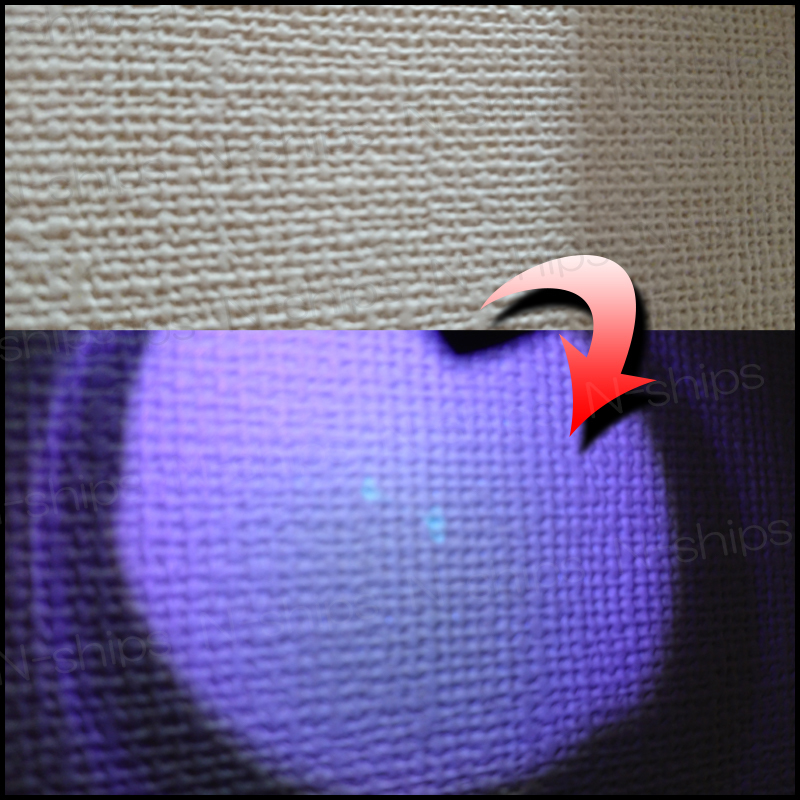 | LED小型UVブラックライトです。 いろいろな用途に利用でき、 コンパクトで持ち運びも簡単。 紫外線照射可能なLEDハンディライト。 ピーク波長は365nmで、 紫外線の蛍光反応が最も良い波長を使用しています。 ズームイン、アウトで照射エリアの変更ができ、 点灯モードは強、弱、点滅の3段階切り替え。 ■使用用途■ ①汚れや傷の発見 人の歯や爪、血液や尿までこのUVライトで光るので、 流し台やカーテン、じゅうたん、洋服、 シーツ、トイレや洗面所など、 家の中で照射してみると目に見えない汚れが 簡単に浮かび上がります。 トイレの壁などを照らしてみると 気づかない汚れもよく見える! 乾燥して見えなくなった ペットや犬、猫、ネズミなどの排泄物も見つけることが可能です。 ②夜釣りのルアーの蓄光 グロー系のルアーやワームの仕掛けに対して 照射するとあっという間に蓄光可能です。 ③鉱物や宝石、骨とう品などの品質の検査 ④郵便物のバーコード確認 ⑤お札の偽造防止の印刷確認 ⑥ジェルネイルやネイル、UVレジンのレジン硬化 ⑦衣服への像白剤や蛍光剤の残留確認 ⑧クレジットカードの偽造防止の確認 ■商品詳細■ サイズ:92mm×26mm 防水:IPX5 使用電池:単三電池×1(電池は付属しません) | |||