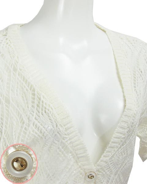 | メッシュニットの上品なカーディガン。オフ白なので、あわせやすく重宝します。メッシュカーディガンなら、ワンピースやトップスのオシャレを見せながら、露出感が減李おすすめです。 |