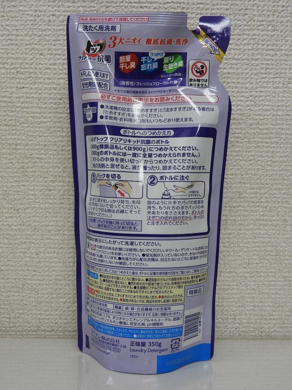 LION ライオン トップ クリアリキッド抗菌 部屋干し 特撰品 つめかえ用 350g×24袋 8.4kg 1ケース 送料無料 管理番号s625