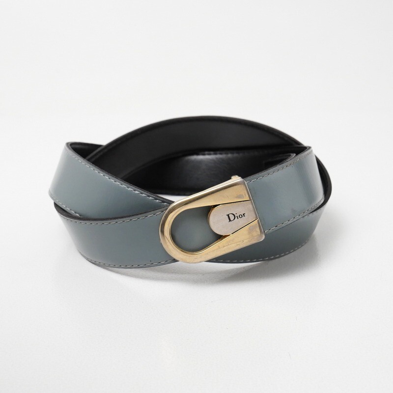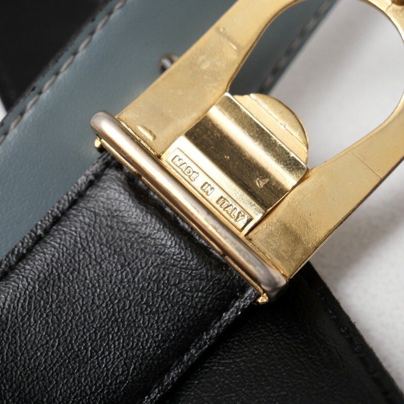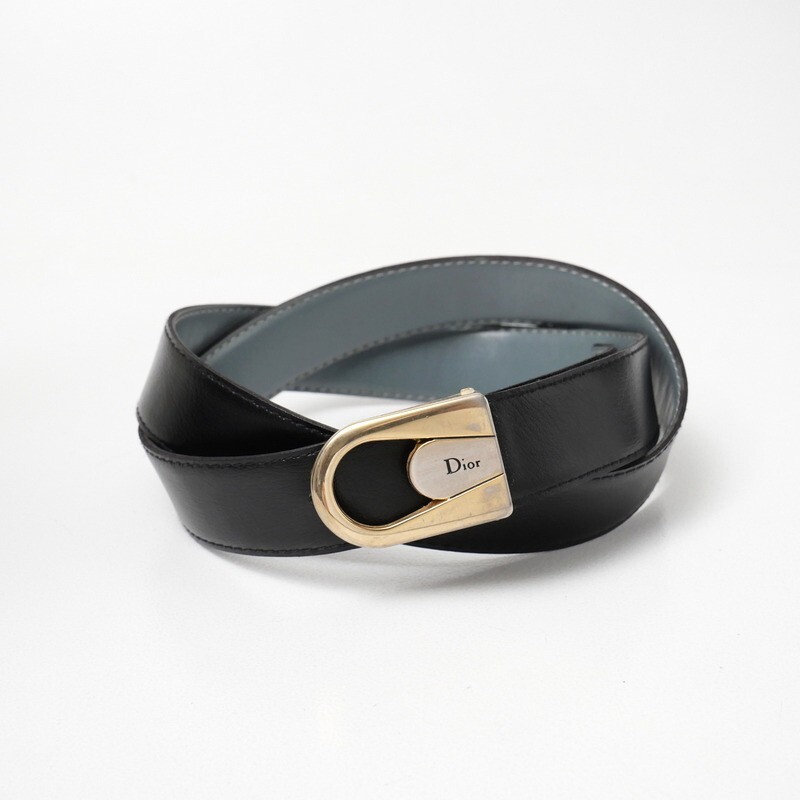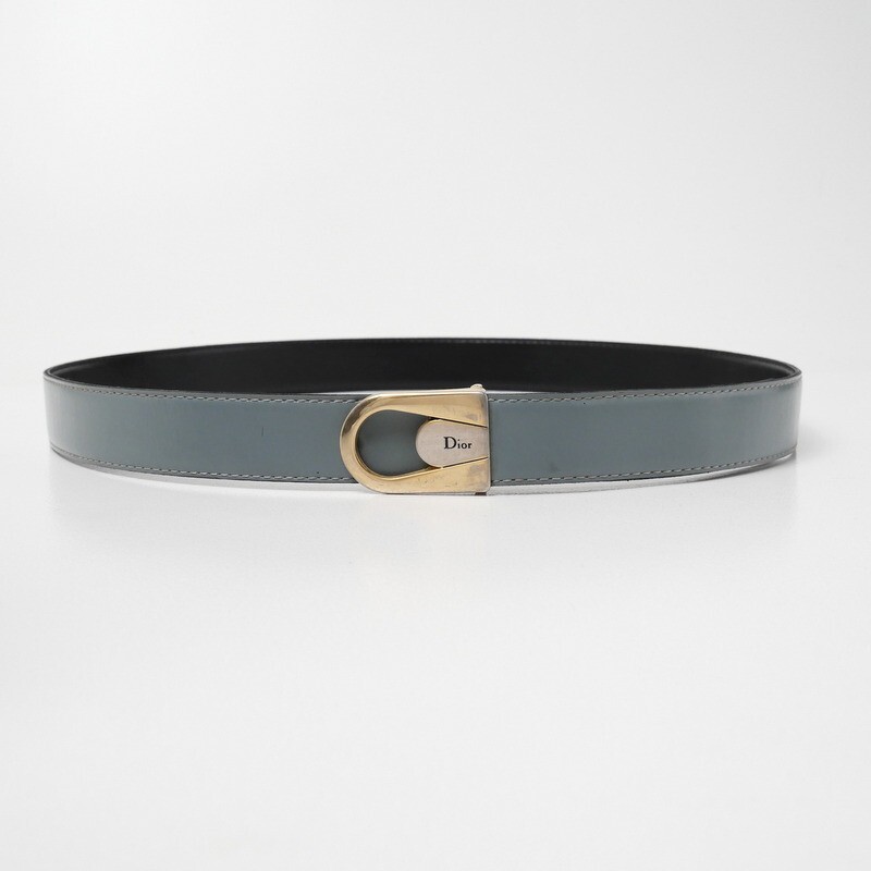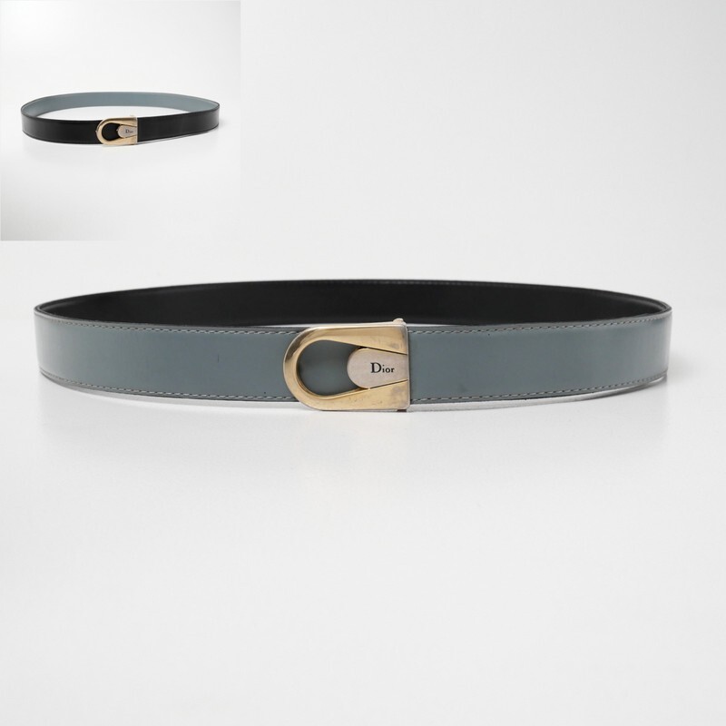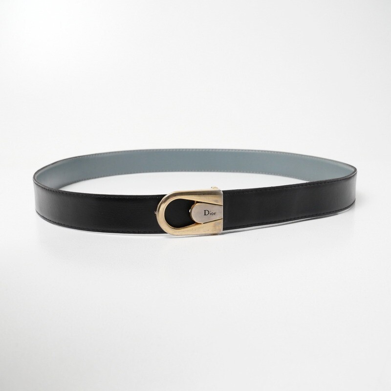 | GS5606*イタリア製 VINTAGE Dior クリスチャンディオール リバーシブル レザーベルト 革ベルト ロゴバックル ブルー×ブラック | |||
