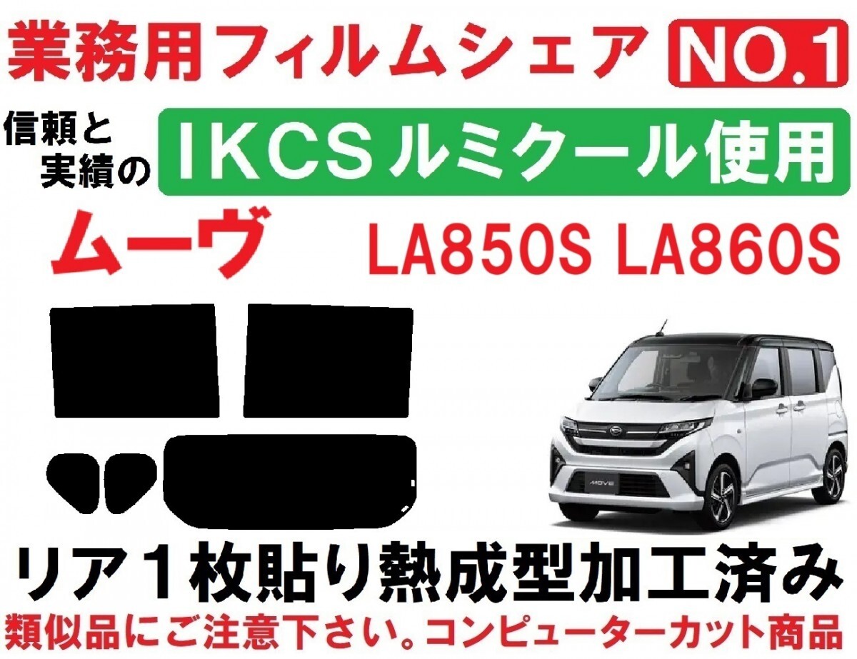 ムーヴ(LA850S LA860S)用『IKCSルミクール使用』リア1枚貼り成型加工済みフィルムリア5面セットです。(専用施工液付き) ・信頼の品質と実績で永い間業務用フィルムとして選ばれ続けているIKCS製品です。 ・業務用フィルムの中で最も信頼性の高い、ベストセラー商品です。 ・詳しくはIKCS株式会社HPをご覧ください。 ※『ルミクール』は当店でも 施工実績・販売実績NO.1の超人気商品です。 令和7年~ LA850S LA860S に適合します。 ハイマウントストップランプ部分の切り抜きも出来ます(画像2) ご落札後、ご指定下さい。 ※適合等 ご不明な点など有りましたら、お気軽にご質問下さい。 ◇◆◇施工に便利なプロ仕様のヘラセット付き商品も出品中です◇◆◇ こちら ◇◆◇精密コンピューターカット◇◆◇ 貼りやすさを最優先に各部のサイズ・形状など微調整し、改良を重ねた独自のデータを製作。 高精度な最新・大型カッティングプロッターによるカットで正確で滑らかなカットラインを再現しています。 施工業者だからわかる、貼りやすいサイズ・形状に仕上げています。 ◇◆◇リア1枚貼り成型加工済み◇◆◇ リアガラスの湾曲に合わせて熱成型加工して有りますので、平面に貼るのと同様にたるみが出ず1枚貼り出来ます。 ※最適な状態に成型加工して有りますので、ヒートガン(ドライヤー)等は不要です。 ◇◆◇専用施工液付属◇◆◇ 軽視されがちな施工液ですが、貼りやすさに大きく関わる部分になります。中性洗剤などで代用せず、必ず付属の専用施工液をご使用下さい。 濃度については車種・季節などにより変わりますので、個別にお知らせ致します。 国内シェアNO.1の『IKCSルミクール』を使用しています。 ルミクールは経年退色が極めて少ない着色加工技術はもちろん、安定した冷暖房効率をアップする熱線遮断効果や断熱効果、内装を守り日焼けを防ぐため、全てのフィルムで99%の紫外線カットを実現しています。 ガラスの飛散防止効果で高い安全性を保ち、ハードコートタイプなのでキズにも強いカーフィルムです。 改良を重ねながら 信頼の品質と性能で、永い間業務用フィルムとして選ばれ続けています。 ■フィルムの種類■ 可視光線透過率 3% NS-003HC 可視光線透過率 7% NS-008HC 可視光線透過率13% NS-015HC 可視光線透過率20% NS-020HC 可視光線透過率30% NS-030HC 可視光線透過率46% NS-045HC ■全商品、キズに強いハードコート・紫外線(UV)99%カットです。 ※可視光線透過率が低くなるほどフィルムの色は濃くなります。 サイドとリアで濃さを替えたり等、可能です。 部分的にフィルムが必要になった場合、単品販売も承ります。 他にもムーヴ(LA850S LA860S)用フィルム、各種出品中です。こちらもご覧ください。 ご不明な点など有りましたら、お気軽にご質問下さい。 | ||
