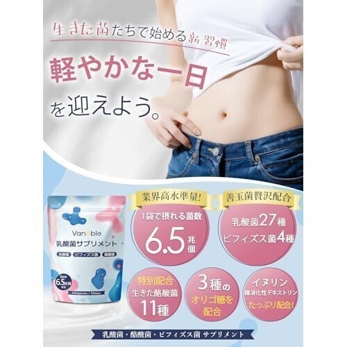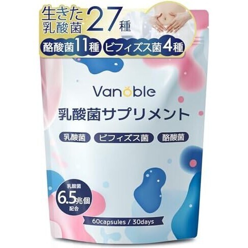 Vanoble 乳酸菌 サプリ 6.5兆個 酪酸菌 ビフィズス菌 オリゴ糖 食物繊維 イヌリン 菌活 耐酸性カプセル採用 GMP認定工場 60粒30日分| 出价者 | 信用 | 价格 | 时间 |