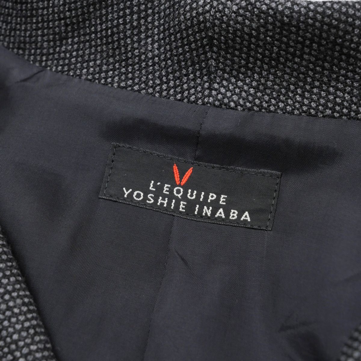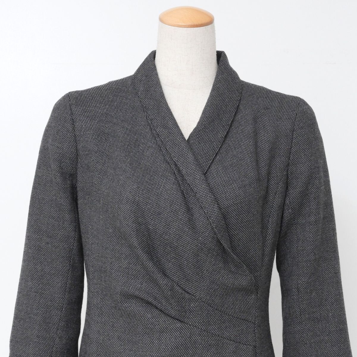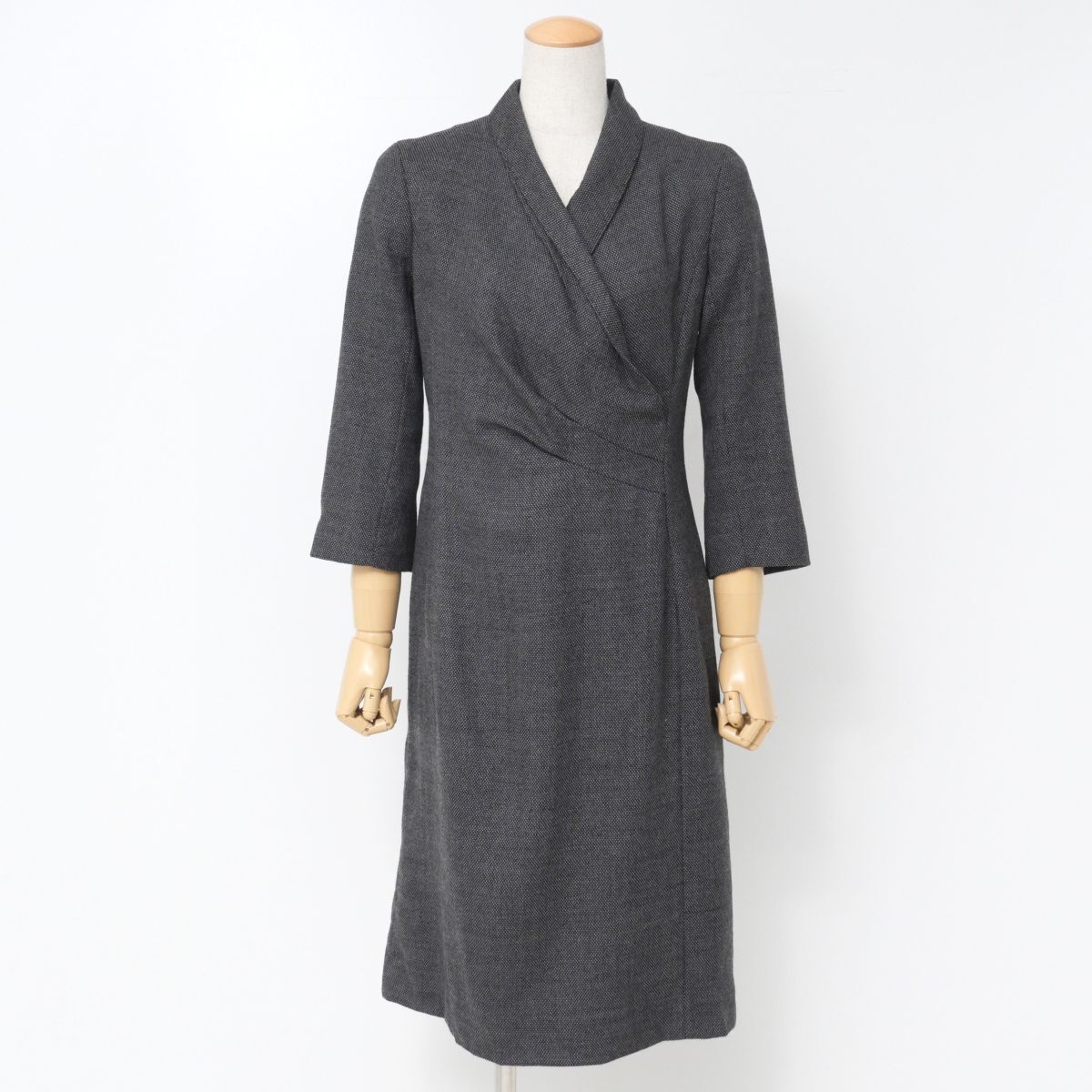 | TI6510☆レキップ ヨシエイナバ L'EQUIPE YOSHIE INABA 総柄 七分袖ワンピース カシュクール ウール ストレッチ グレー系 サイズ38 | |||