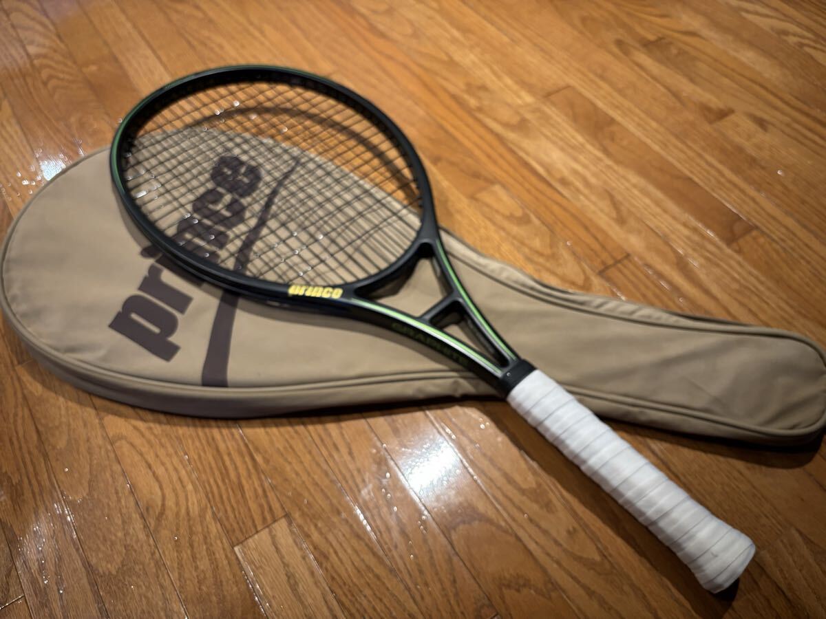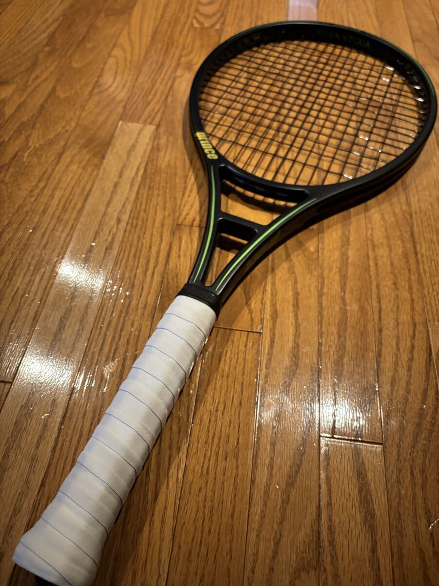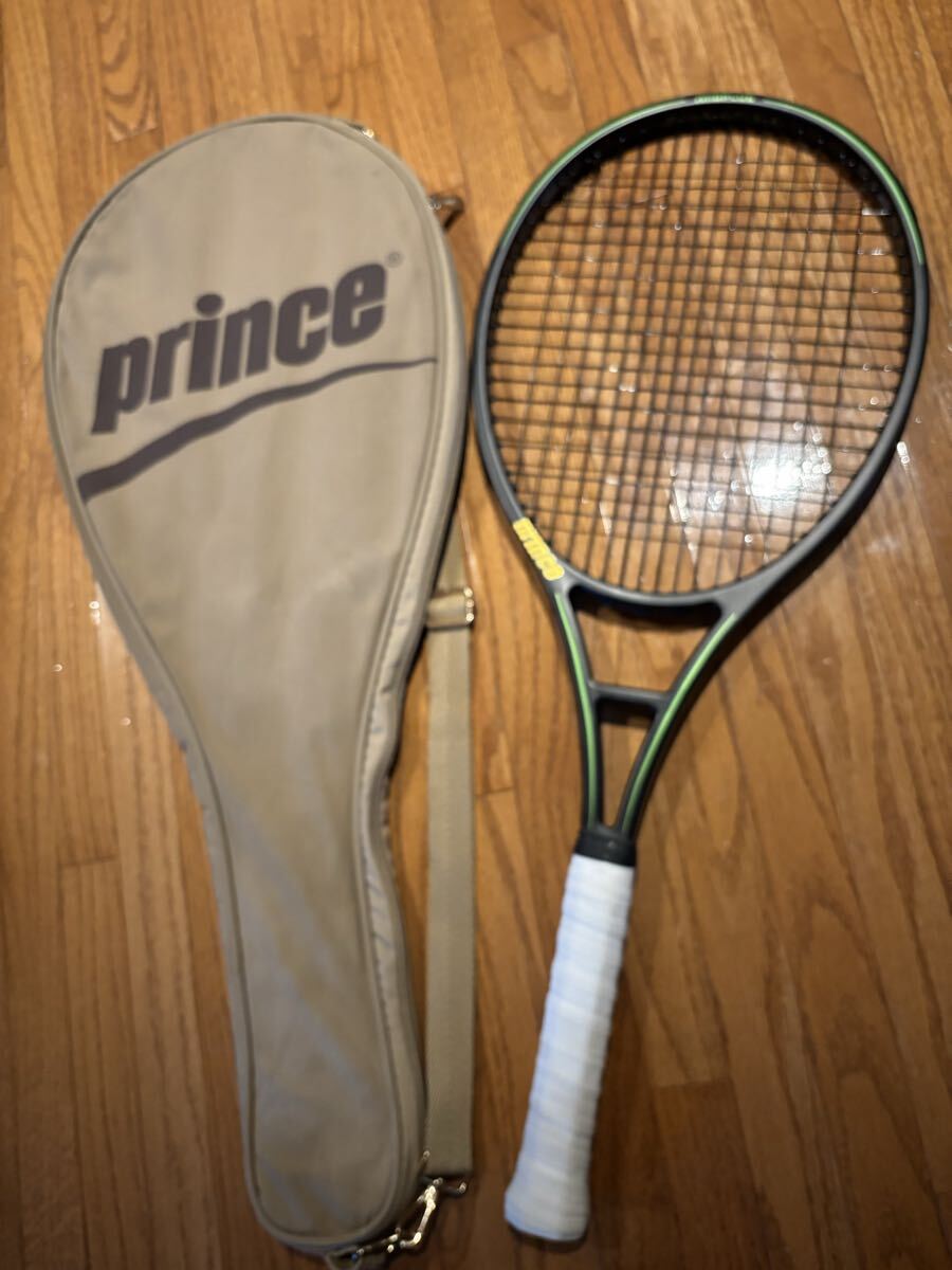 昨年6月頃このオークションで落札しました 7月に現行品が発売されそちらを購入しましたのであまり使用していません 程度はいいと思います 個人的には現行に劣らず戦えるラケットだと考えます ガットはプリンスナイロンガットを58/55で張ったと思いますが半年以上経過していますのでおまけとお考えください ラケットケース付属します